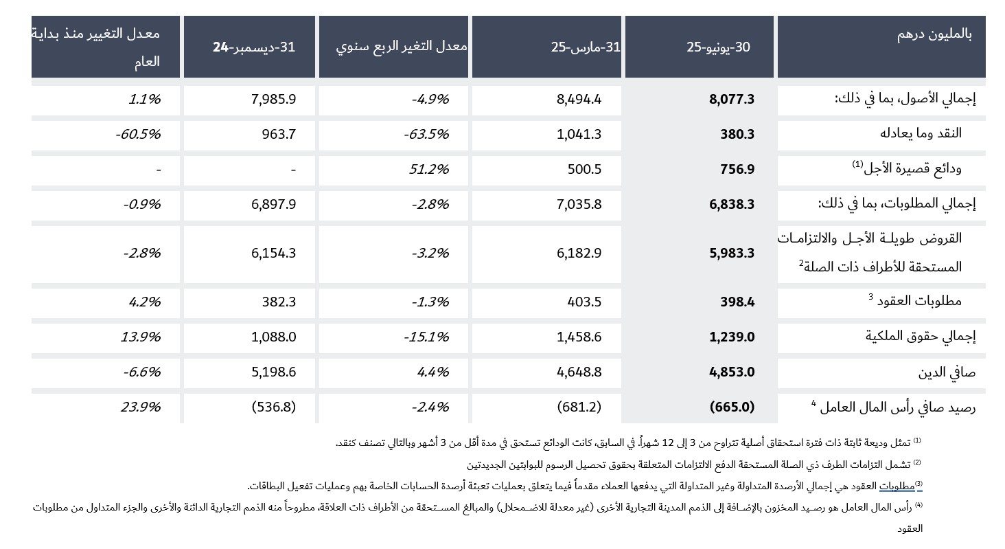 موجز التدفقات النقدية: تدفق نقدي حر بقيمة 1,111.6 مليون درهم وهامش 72.8% في النصف الأول من عام 2025