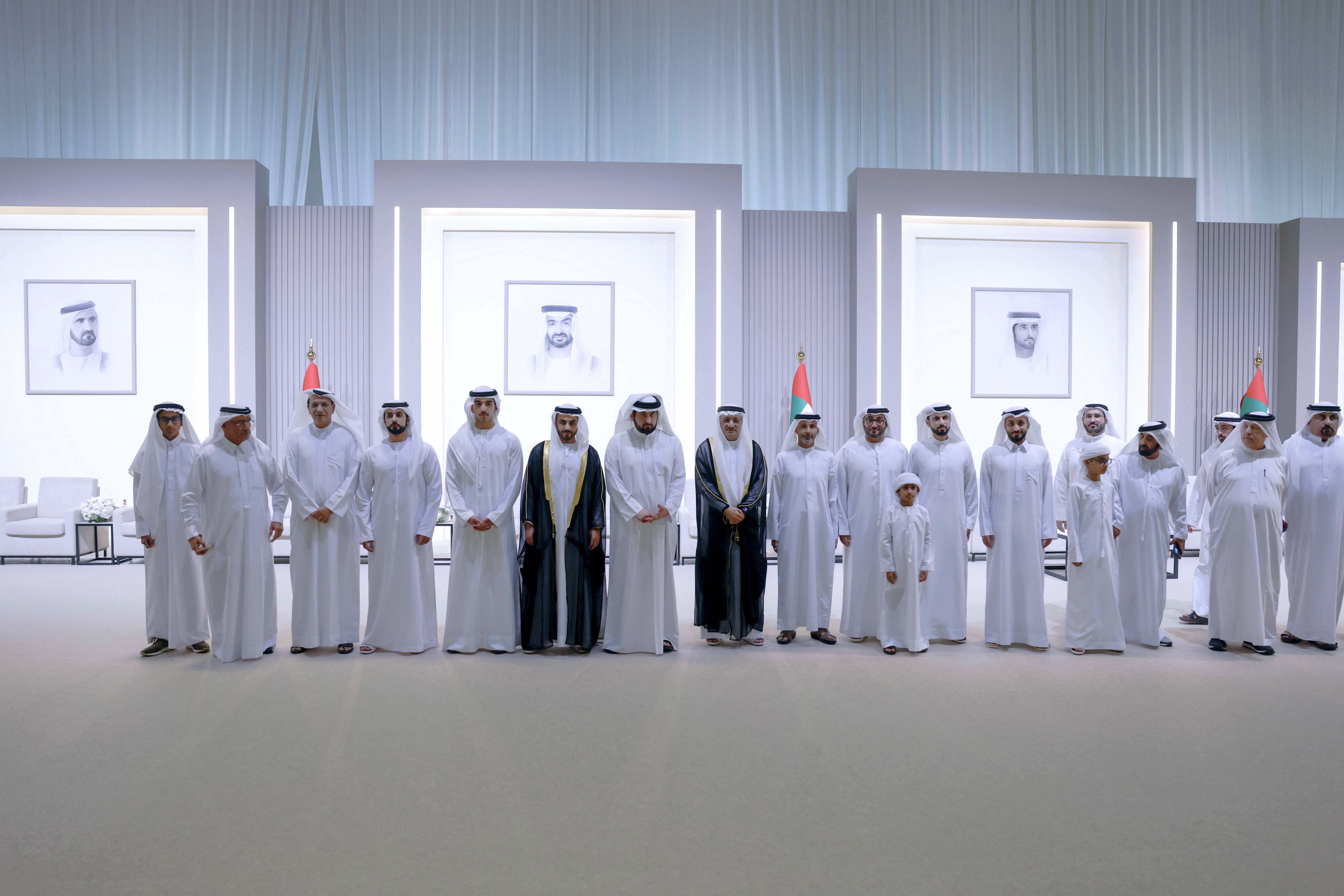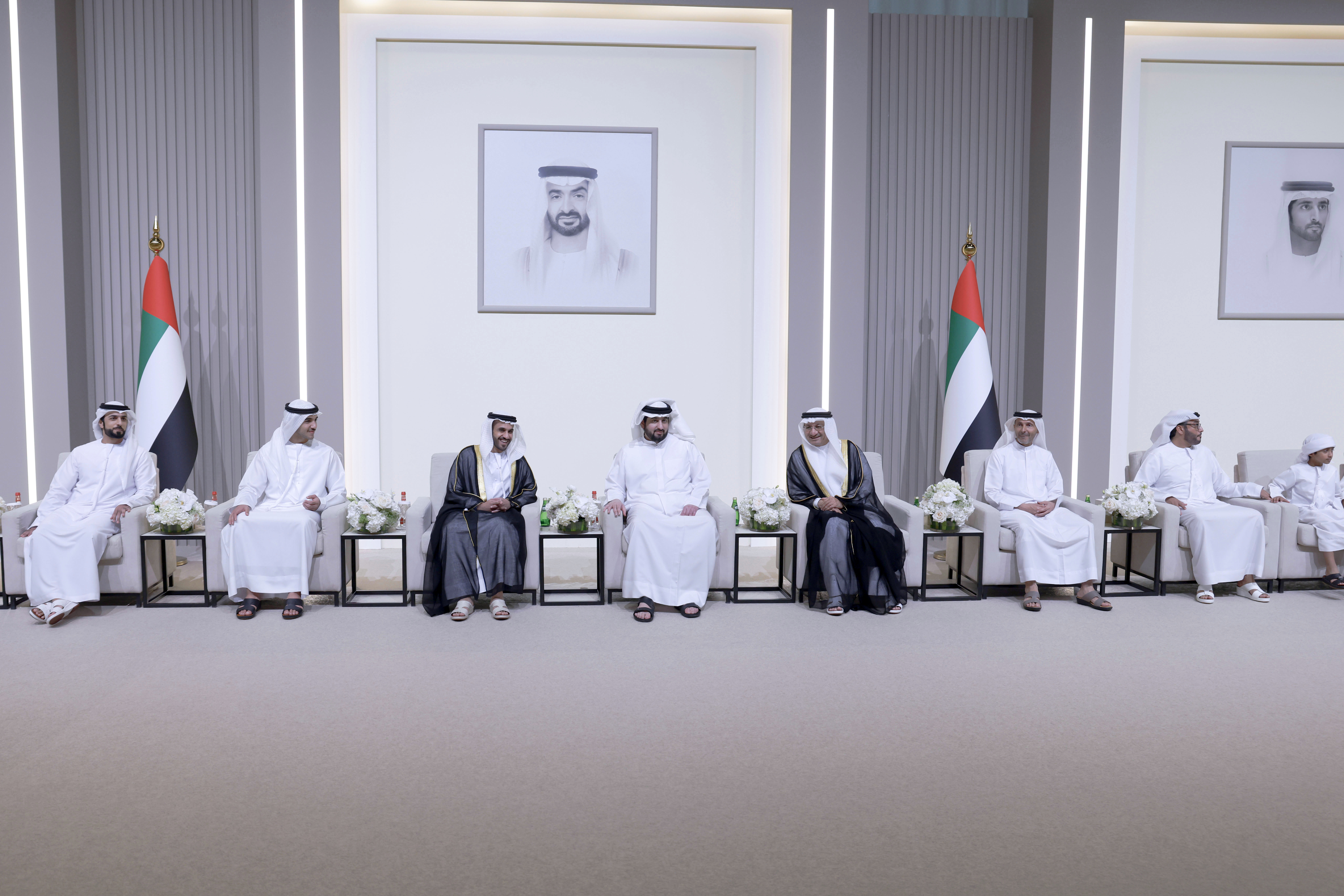 حضر سمو الشيخ أحمد بن محمد بن راشد آل مكتوم، النائب الثاني لحاكم دبي، يرافقه سمو الشيخ محمد بن راشد بن محمد بن راشد آل مكتوم، حفل الاستقبال الذي أقامه معالي حميد محمد القطامي في دبي، بمناسبة زفاف نجله محمد، على كريمة راشد محمد بو غانم السويدي.
