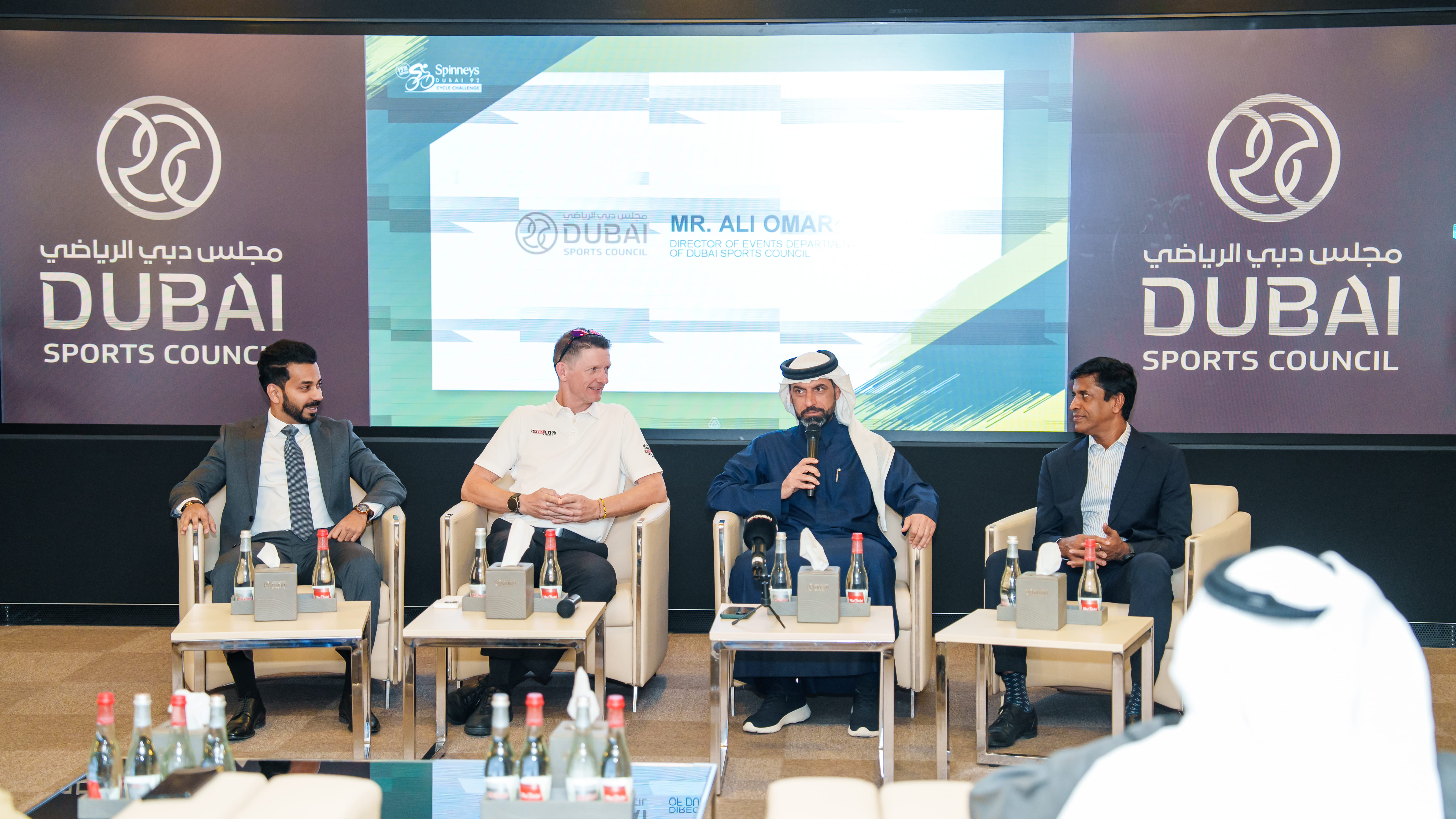 جاء ذلك خلال المؤتمر الصحفي الذي عقد في مقر مجلس دبي الرياضي وتحدث فيه: علي عمر البلوشي مدير إدارة الفعاليات الرياضية في مجلس دبي الرياضي، وسونيل كومار الرئيس التنفيذي لمجموعة سبينس، وستيوارت هويسون رئيس سباق تحدي سبينس دبي 92 للدراجات الهوائية، وجيسكو جونزاليفز مدير عام سيارات جي تور الإمارات.