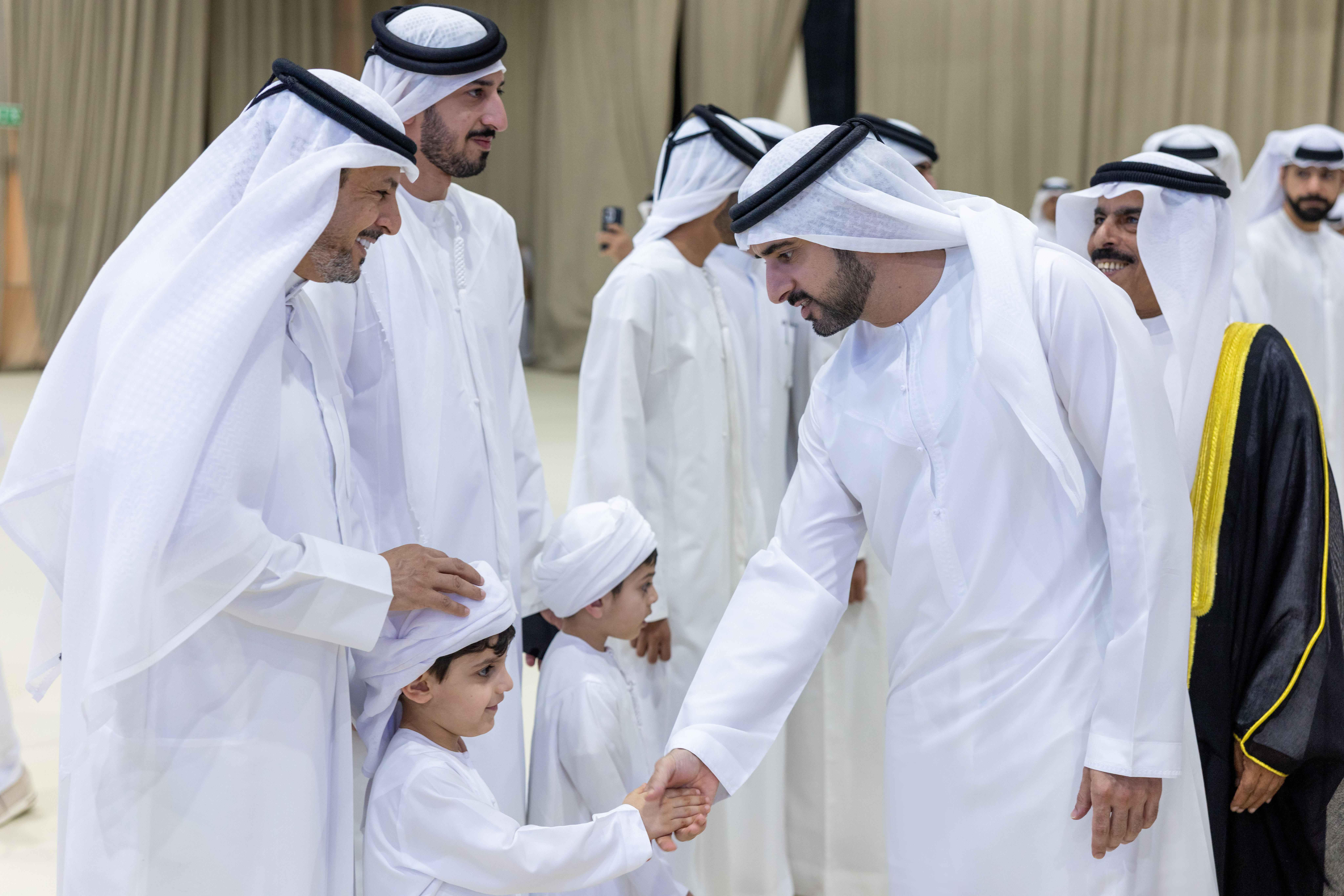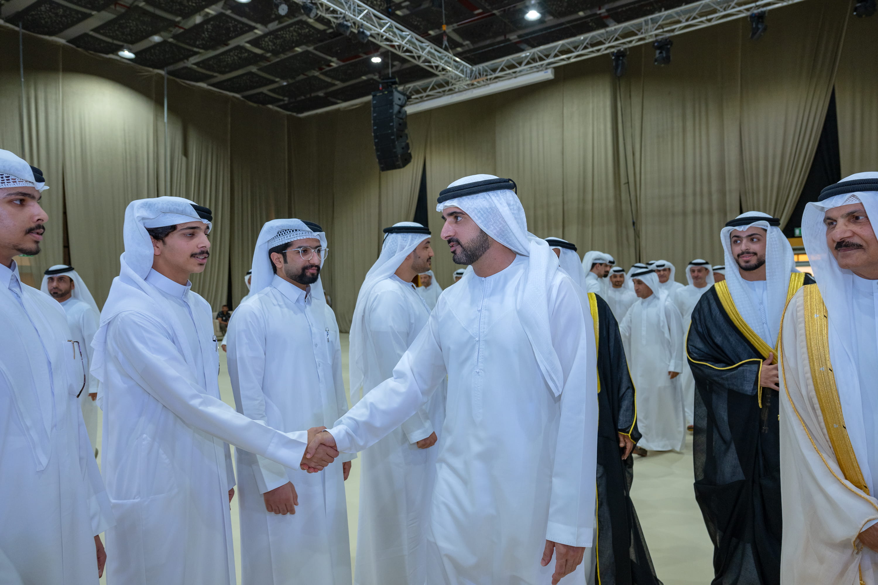 حضر سموّ الشيخ حمدان بن محمد بن راشد آل مكتوم، ولي عهد دبي، نائب رئيس مجلس الوزراء وزير الدفاع، رئيس المجلس التنفيذي لإمارة دبي، اليوم (الأحد) حفل الاستقبال الذي أقامه عبدالله سعيد بن حميد النعيمي في قاعة "البيت متوحد" بعجمان بمناسبة زفاف نجليه، سعود على كريمة محمد أحمد ظاعن القمزي، وسلطان على كريمة سيف سالم راشد الشامسي.