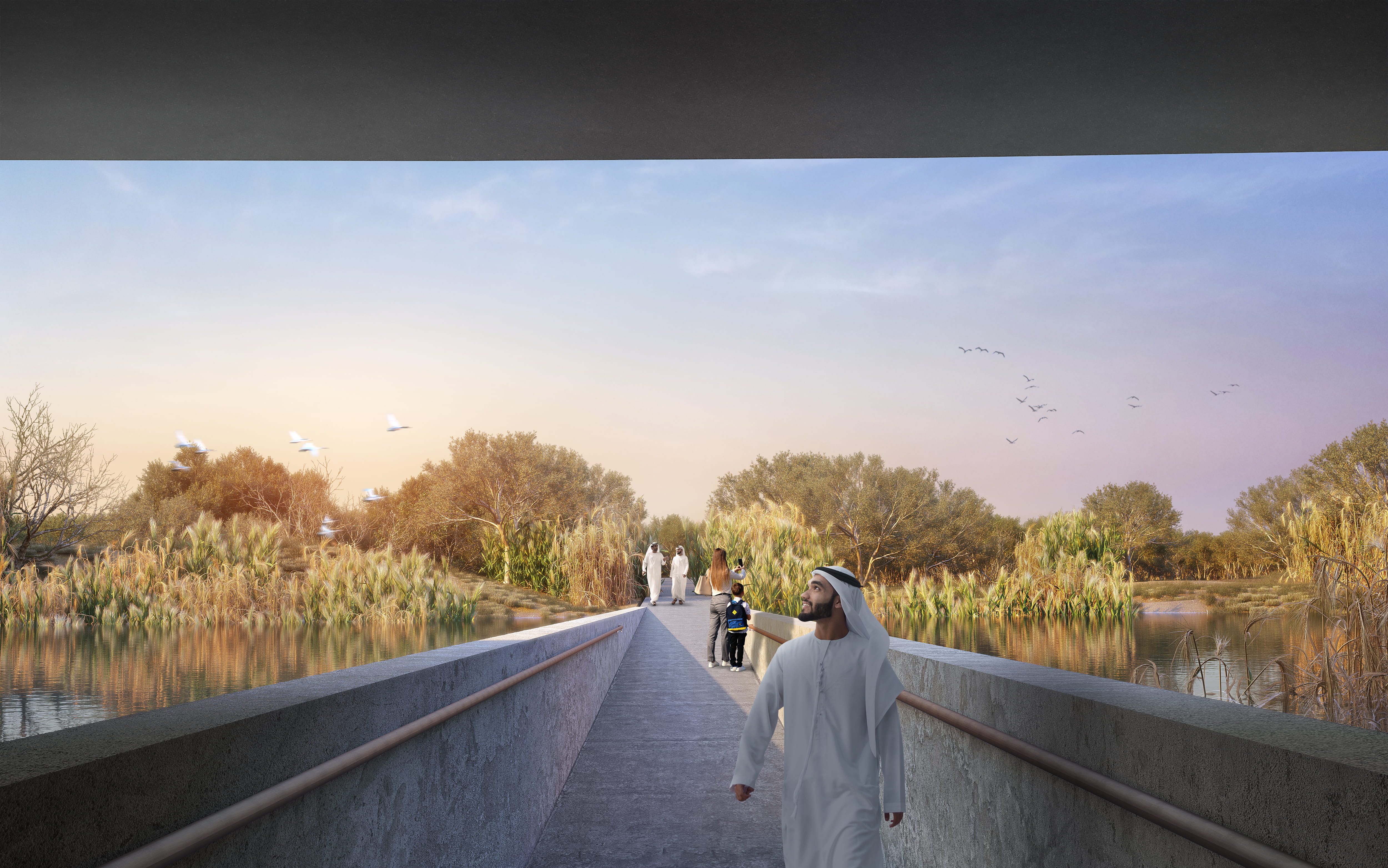 وستشمل هذه المساحات؛ مركزاً للزوار بتصميم متفرد يتيح التعرف على مختلف أنواع الحياة الفطرية والطيور الموجودة في المحمية، ومنصات أبراج لمشاهدة الطيور، علاوةً على العديد من المرافق التجارية والترفيهية، كالمطاعم والأكشاك، وأخرى لتعزيز جوانب التوعية والتثقيف البيئي. كما ستضم هذه المرحلة إنشاء مساراتٍ للدراجات الهوائية بطول 5.6 كيلومتراً، وأخرى للمشي وسط الطبيعة بطول 3 كيلومتراً، إضافةً إلى ذلك ستعزز من رقعة الزراعة التجميلية بواقع 23 هكتاراً.