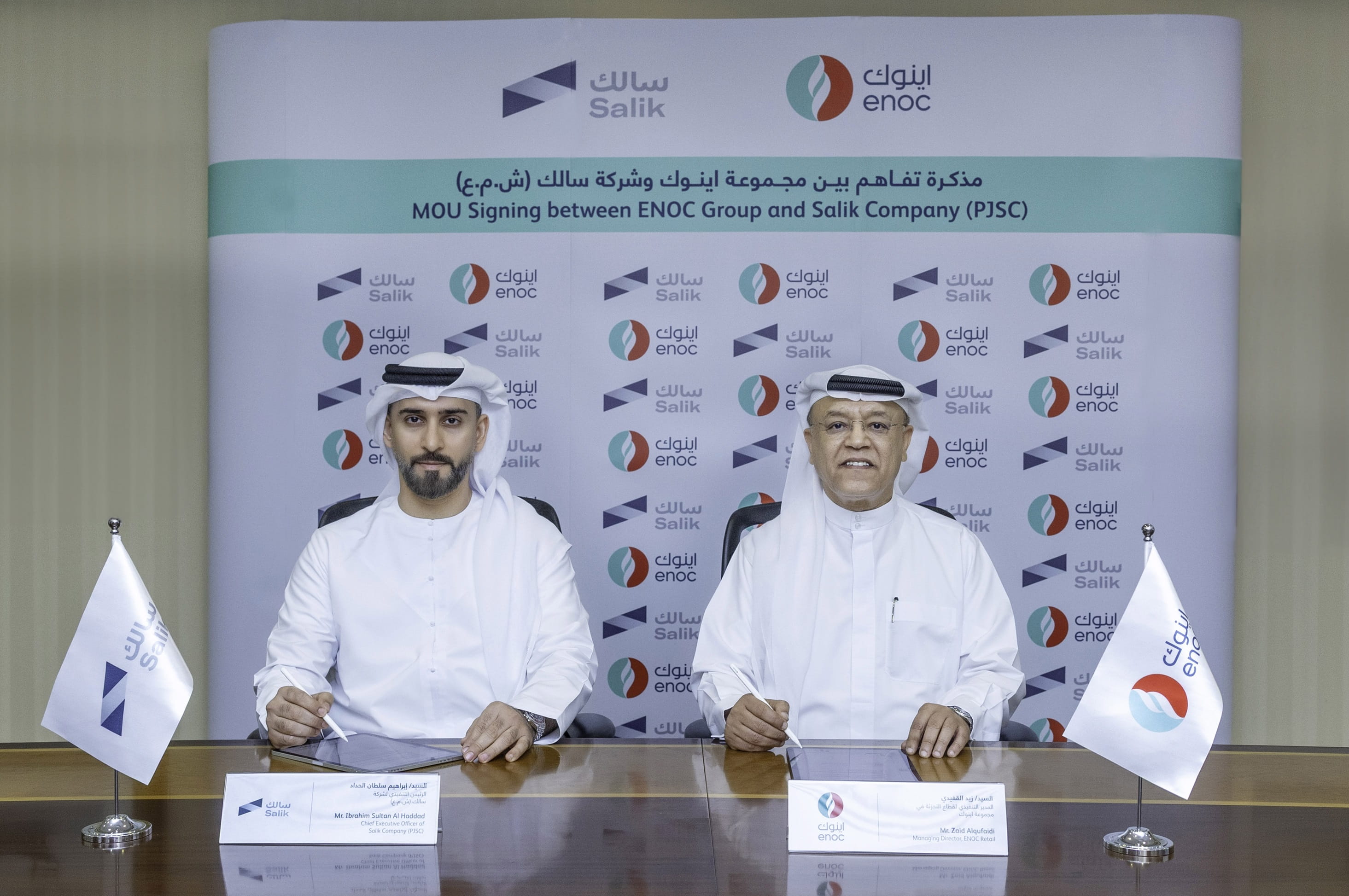 وقّع مذكرة التفاهم في المقر الرئيس لمجموعة اينوك، كلاً من إبراهيم سلطان الحداد، الرئيس التنفيذي لشركة "سالك"، وزيد القفيدي، المدير التنفيذي لقطاع التجزئة في مجموعة اينوك.