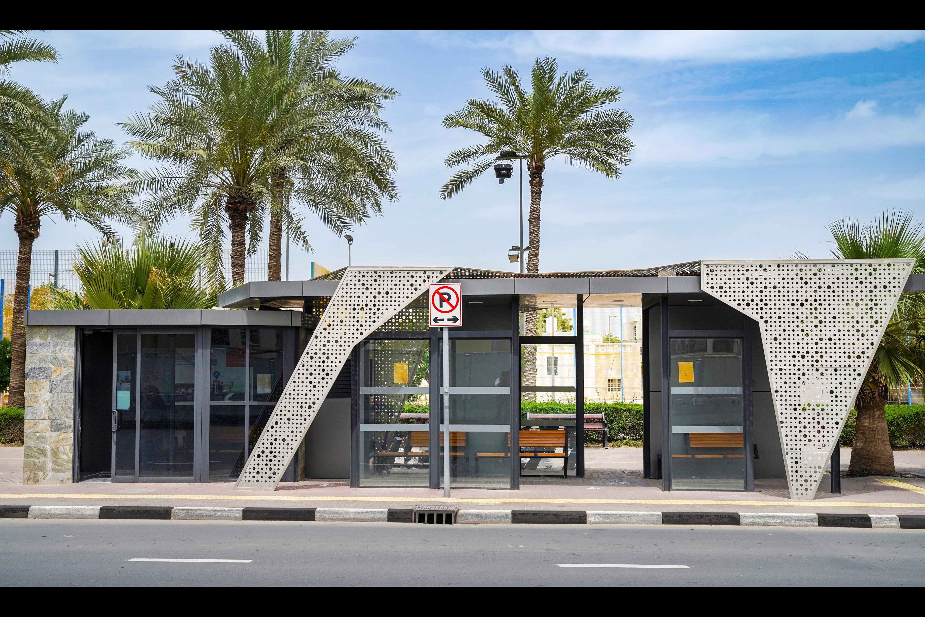 وجرى تخصيص جزء من مساحة المظلّة بحيث يكون مكيّفاً في المواقف الرئيسة، وأماكن خارجية مظلّلة ومساحات إعلانية، إضافة إلى توفير شاشة معلومات لاستعراض خريطة شبكة خطوط الحافلات، والجدول الزمني للحافلات وزمن التقاطر وغيرها من المعلومات والخدمات التي تهُم الركاب.