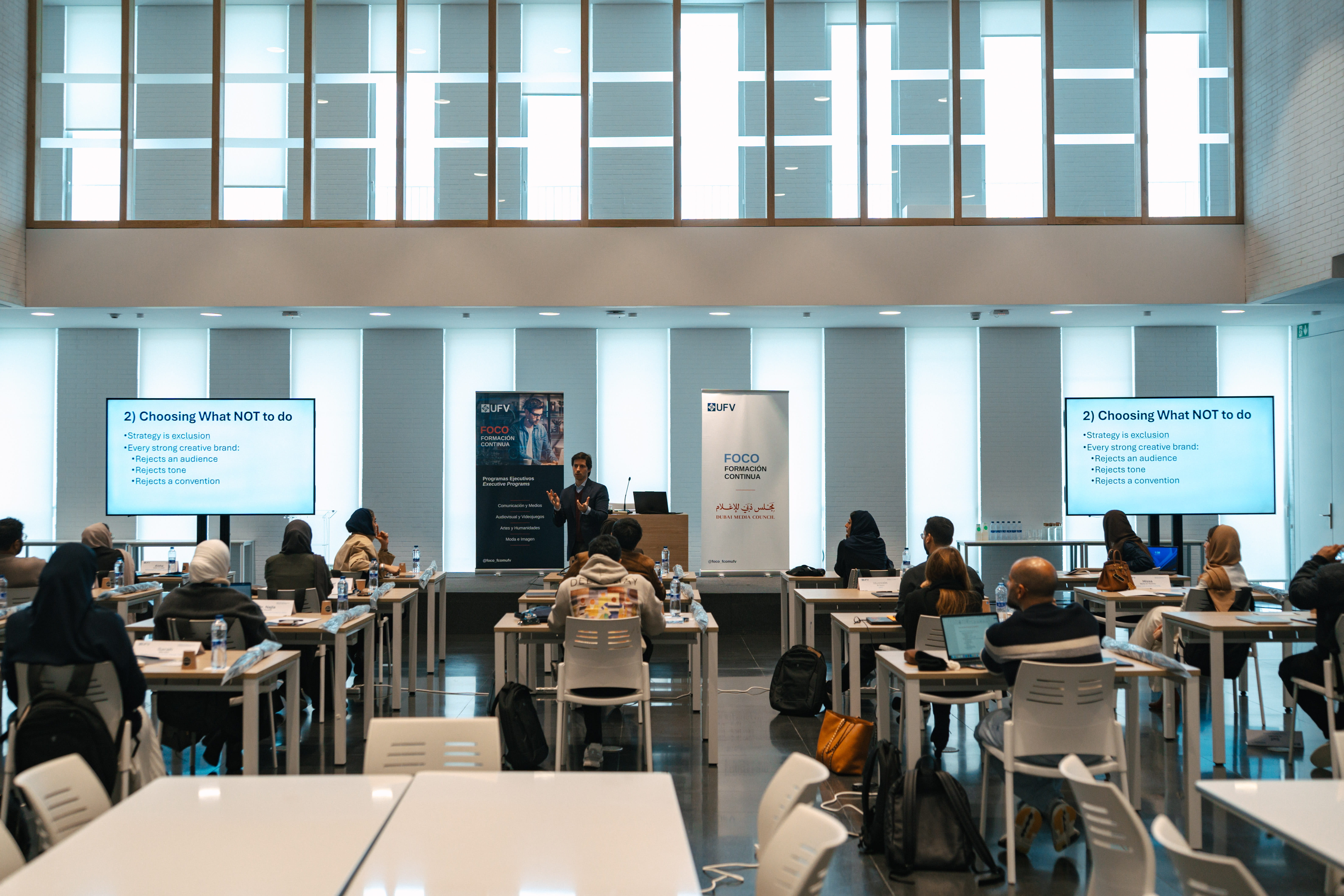 من جانبه، قال خوسيه فرانسيسكو زيغرس، مدير مدرسة FOCO للتعليم المستمر في جامعة فرانسيسكو دي فيتوريا: "سعداء بالتعاون مع مجلس دبي للإعلام في تنفيذ هذا البرنامج المتخصص، الذي يهدف إلى تعزيز القيادة والابتكار في قطاع الإعلام. ومن خلال كلية الاتصال، نحرص بشكل منتظم على العمل مع المؤسسات والمتخصصين في القطاع لتقديم برامج تربط بين الخبرة الأكاديمية والواقع العملي للصناعة، وتوفر مساحات للتبادل الدولي للخبرات. وتعكس هذه المبادرة التزامنا بتطوير قيادات تنفيذية قادرة على التعامل مع بيئة عالمية تتسم بالإبداع والتكنولوجيا والذكاء الاصطناعي".