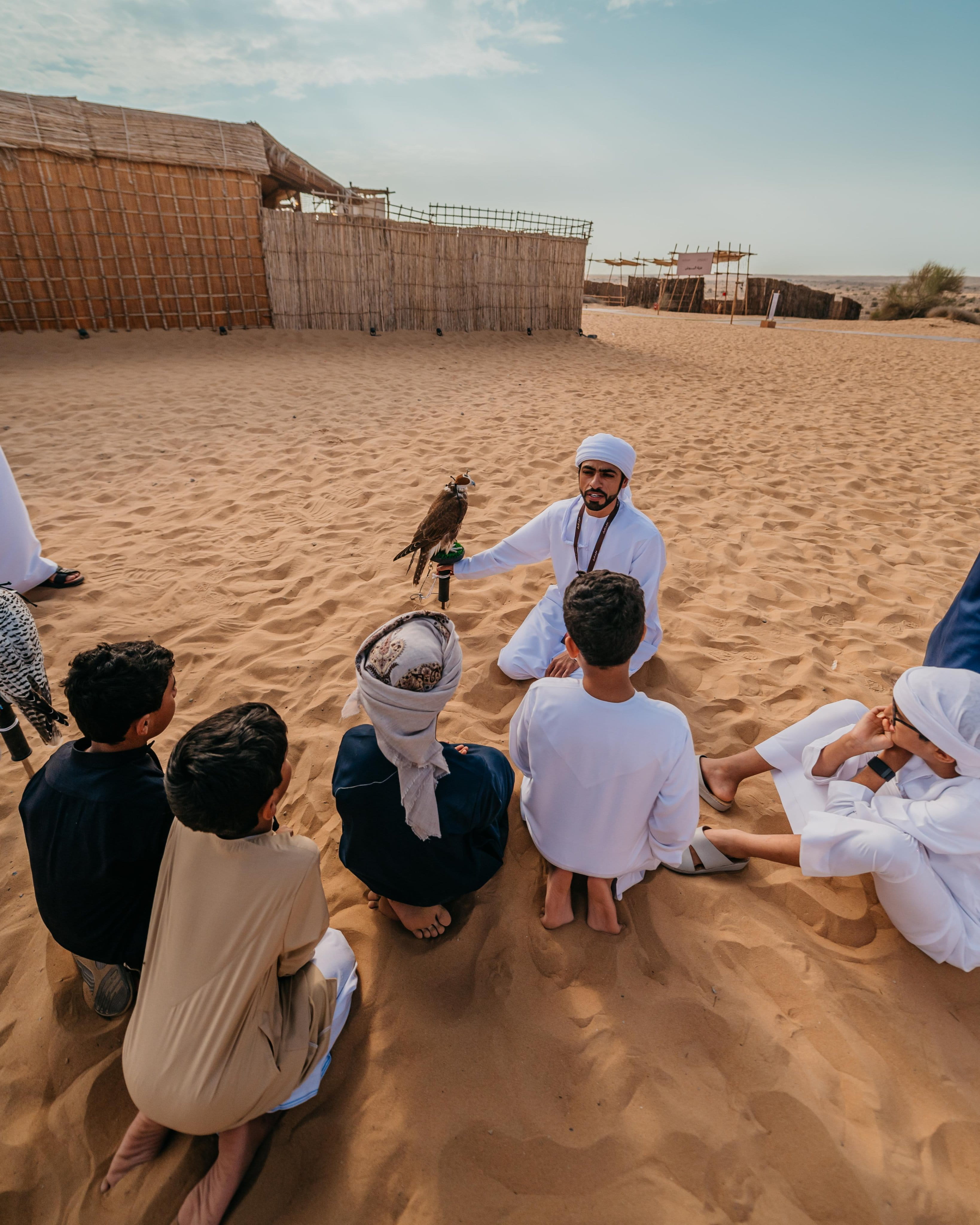 وقدّم المخيم خلال فعالياته بيئة تعليمية وتربوية ثرية بالأنشطة العملية والورش التفاعلية، شملت نصب الخيام، وتعلّم آداب السنع الإماراتي، وإلقاء الشعر، إلى جانب التدريب على مهارات الحياة البدوية مثل الصقارة، والرماية، وركوب الإبل، وإعداد القهوة والطعام التقليدي، ما أتاح للمشاركين تجربة متكاملة تُجسّد تفاصيل الحياة الإماراتية في بيئتها الأصيلة.