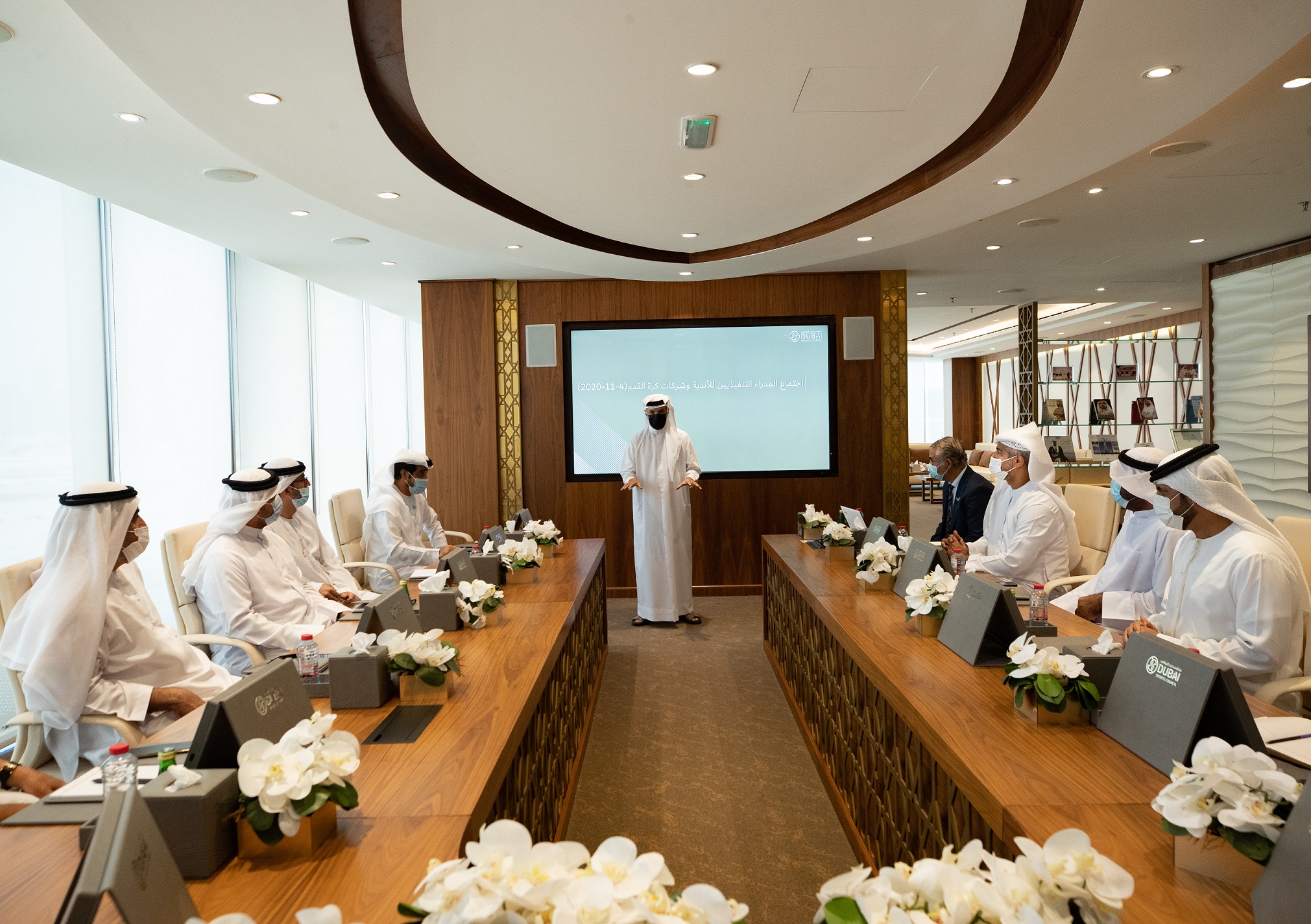 In the meeting, it was decided to submit a detailed weekly report to the Council on cases of COVID-19 infection, if any, and the readiness of Dubai clubs for the return of spectators to the stadiums and lounges by creating a special protocol and getting approval from the Executive Council of the Government of Dubai, and conducting field visits in coordination with representatives of Dubai Police, and working with federations, including the UAE Football Association and the UAE Professional League, for the gradual return of masses, starting with 30 per cent of the facility's capacity.