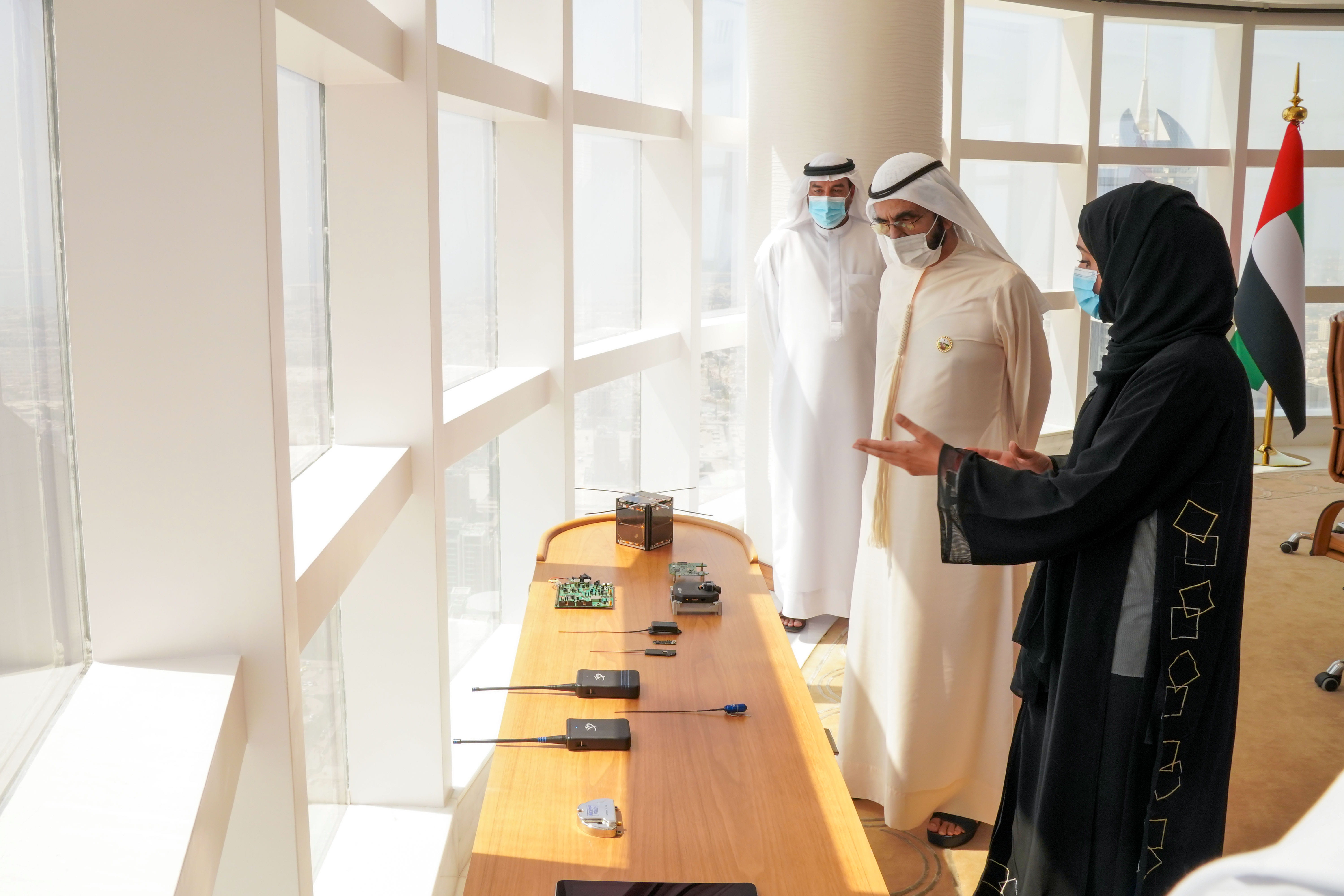 "Achievements made by the UAE in recent years in the space sector have contributed to directing young Emirati thinking towards the future science, so as they can effectively contribute to building the economy of the Emirates of Tomorrow," His Highness added, noting, "Space industries have become a major nerve in the UAE's economic system, in sync with the goals of the National Space Strategy, launched by the government in 2019. '' His Highness Sheikh Mohammed bin Rashid Al Maktoum was briefed about the preparations of the Marshal Intech team to launch the first satellite, Ghalib, whose development began three years ago, which constitutes an important addition to the UAE’s efforts in the research, development and in designing space technology programmes.