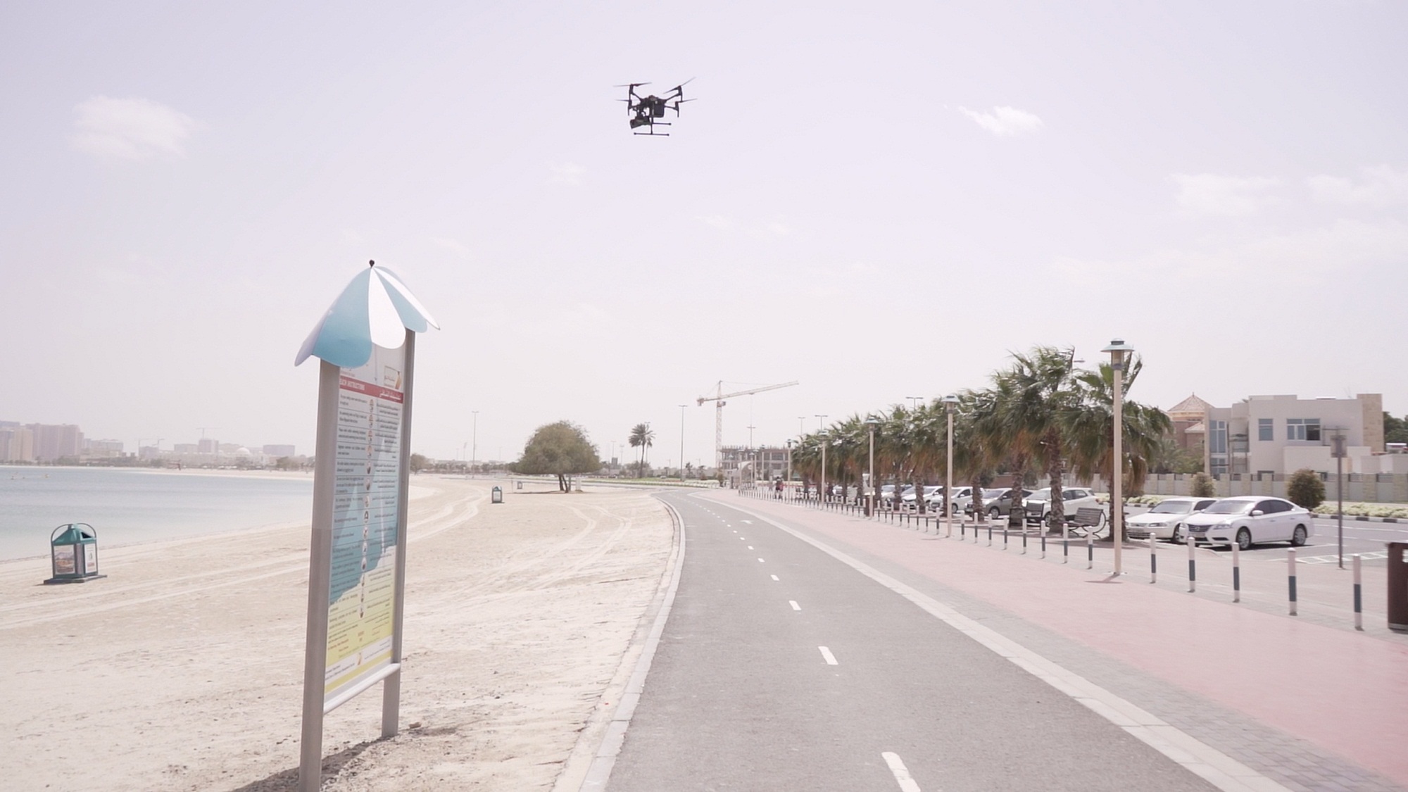 The Dubai Police has started using drones to ensure full compliance with decisions and disseminate the critical message of avoiding public spaces and vacating shores as a precautionary measure to prevent the transmission of the COVID-19 virus.