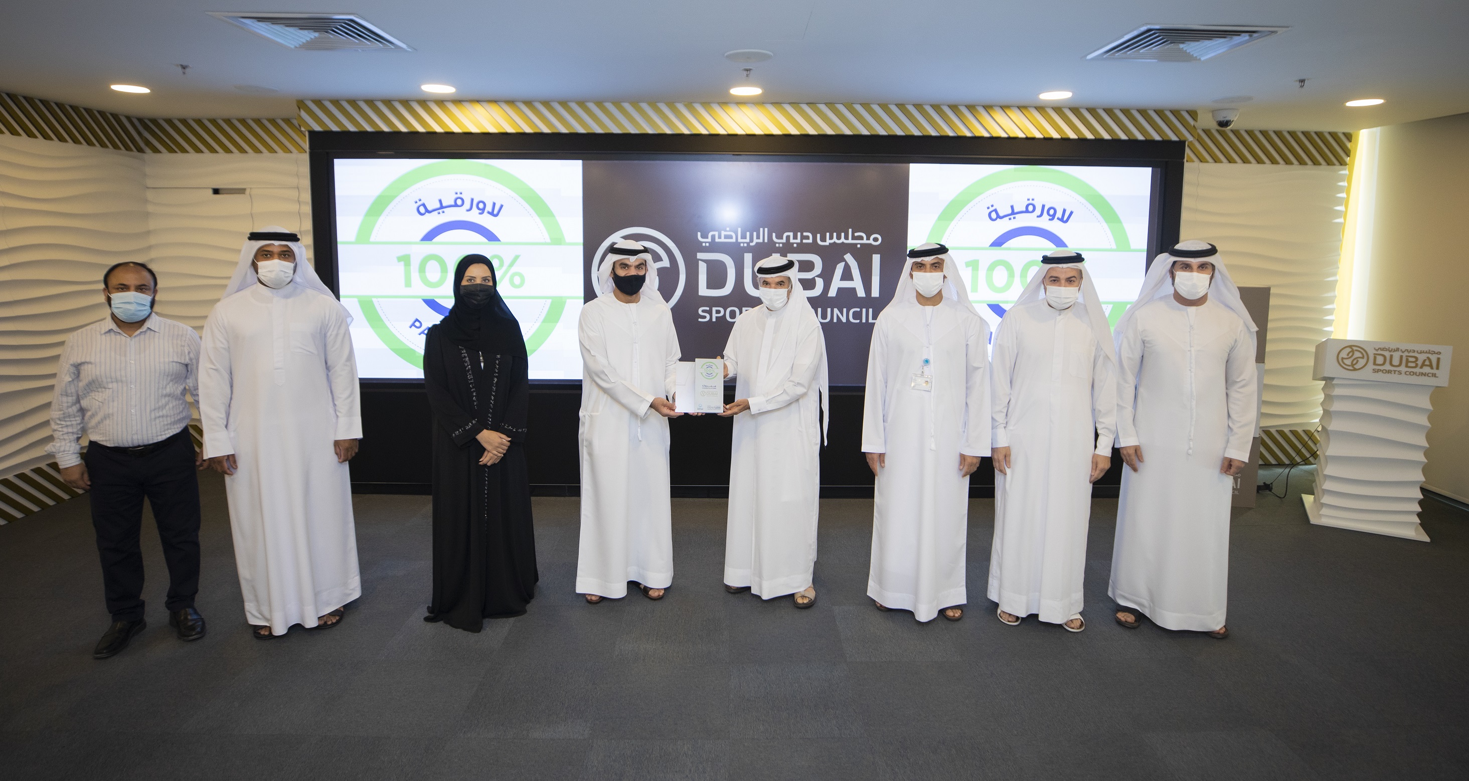 Dubai Sports Council has officially received the “100 per cent Paperless Stamp” from Smart Dubai, becoming the first sports institution of its kind to become totally paperless, converting all its services and transactions into paperless transactions through digital solutions and smart applications.