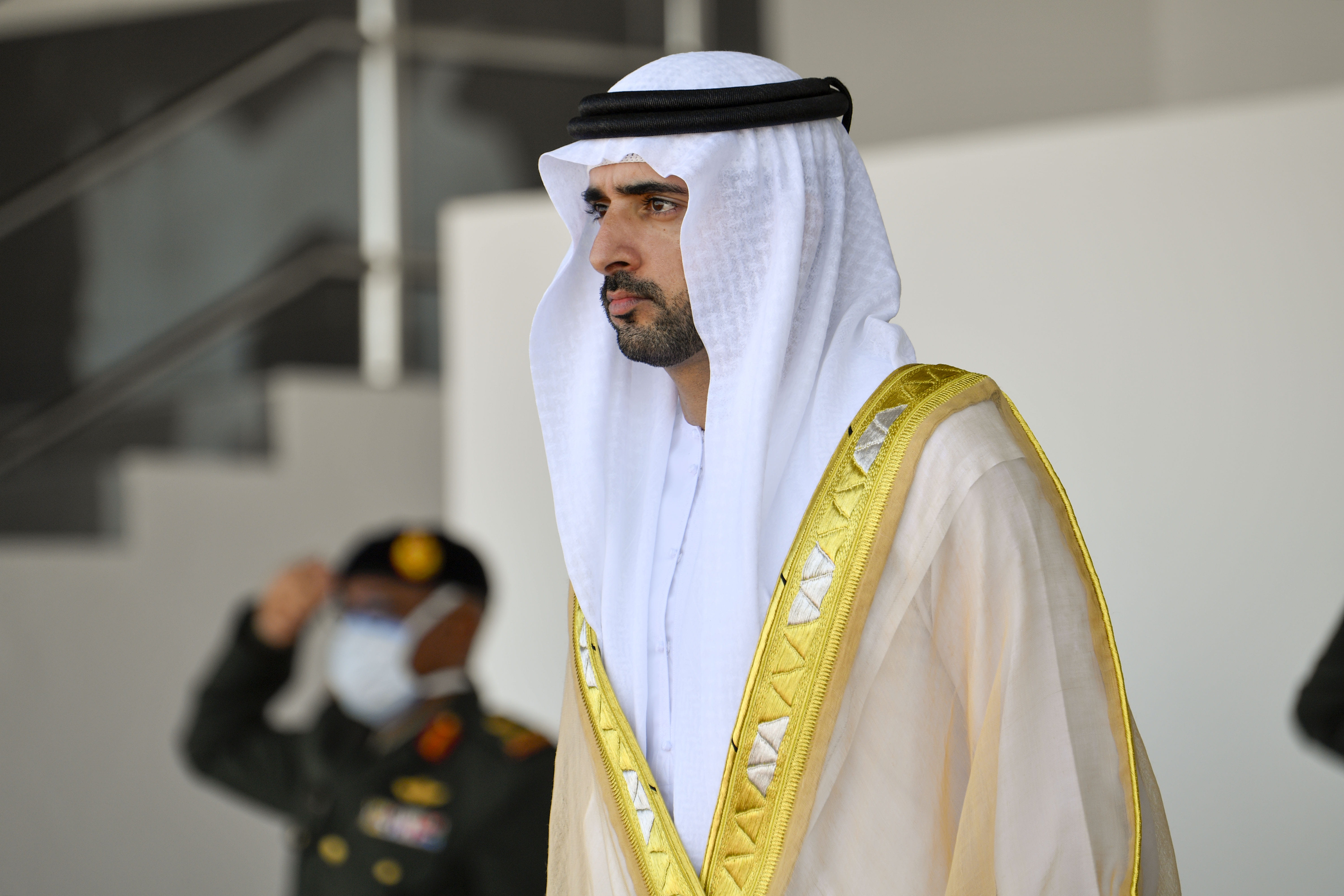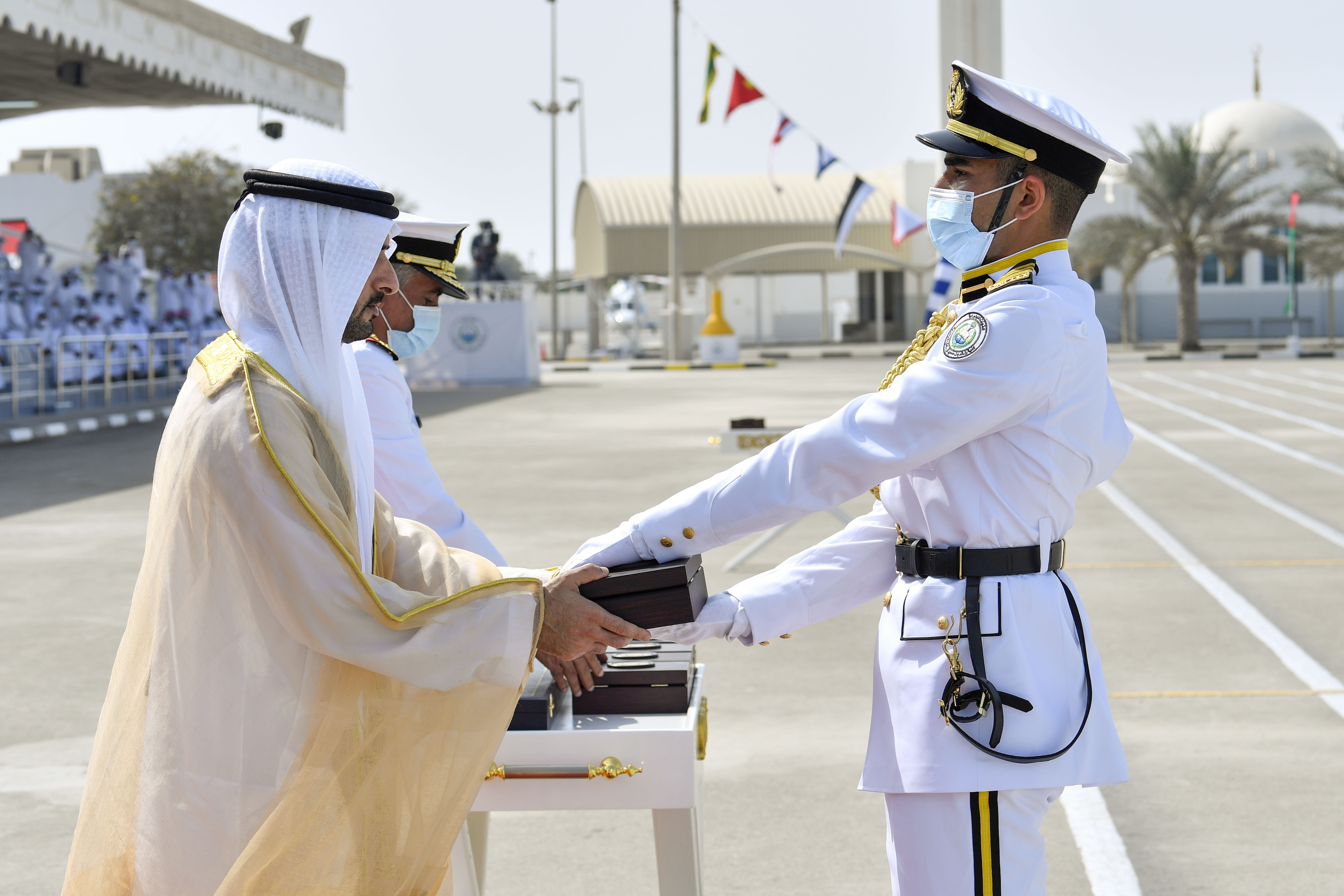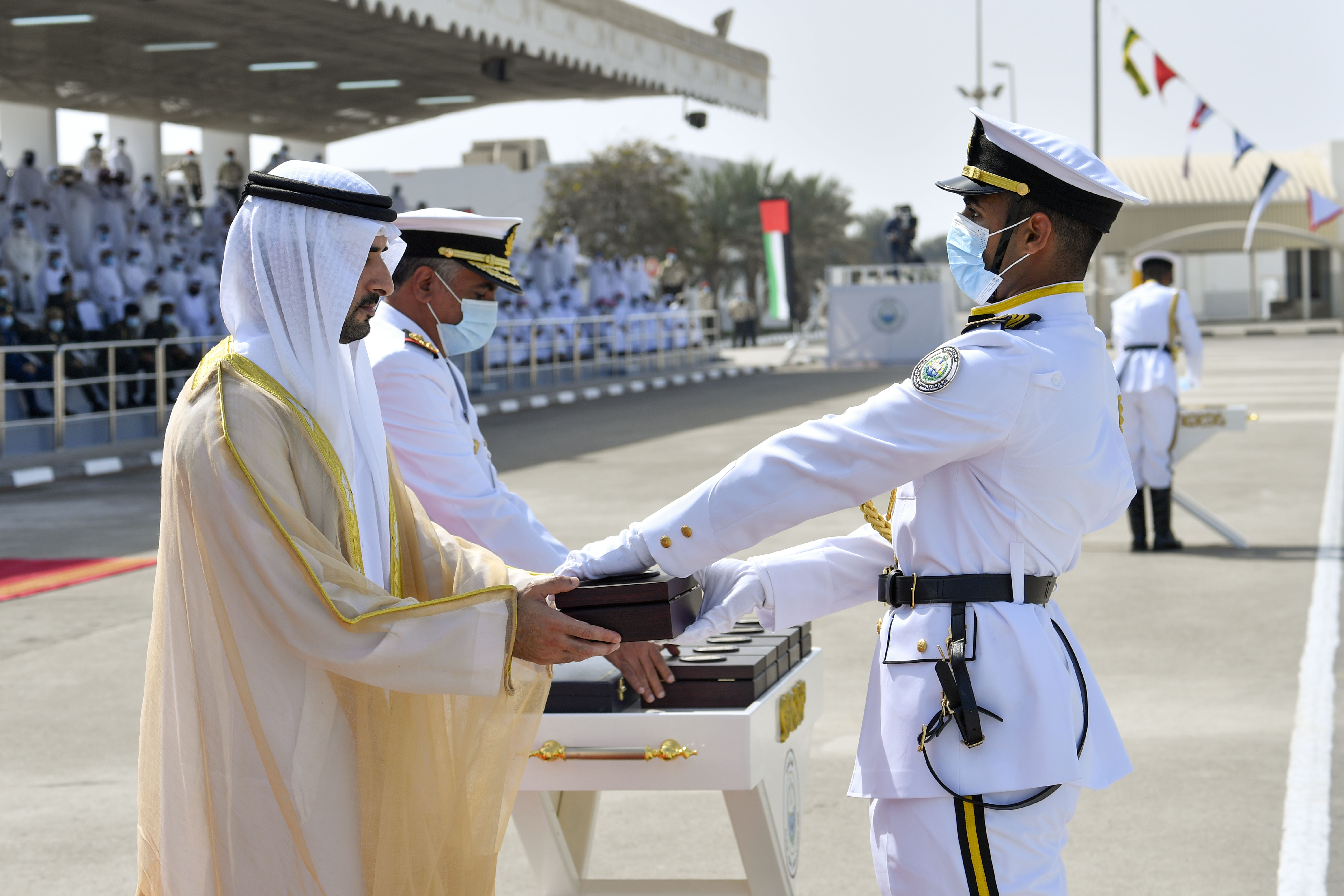 His Highness Sheikh Hamdan bin Mohammed bin Rashid Al Maktoum, Crown Prince of Dubai and Chairman of Dubai Executive Council, has attended the graduation ceremony of the 21st batch of Rashid bin Saeed Al Maktoum Naval College in Al Taweelah, Abu Dhabi.