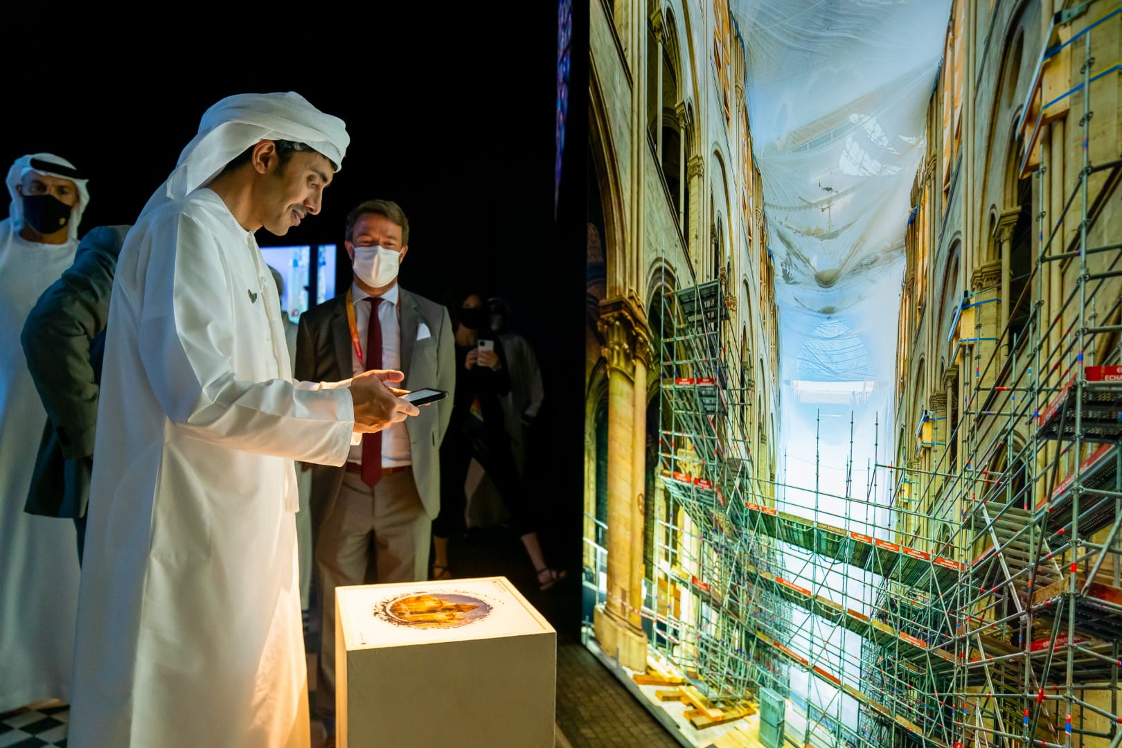 During his visit here, Sheikh Abdullah was apprised about the "Notre-Dame de Paris, the Experience", which creates immersive, interactive reconstructions for the work undertaken to safeguard the structure after the 2019 fire, before the start of reconstruction.