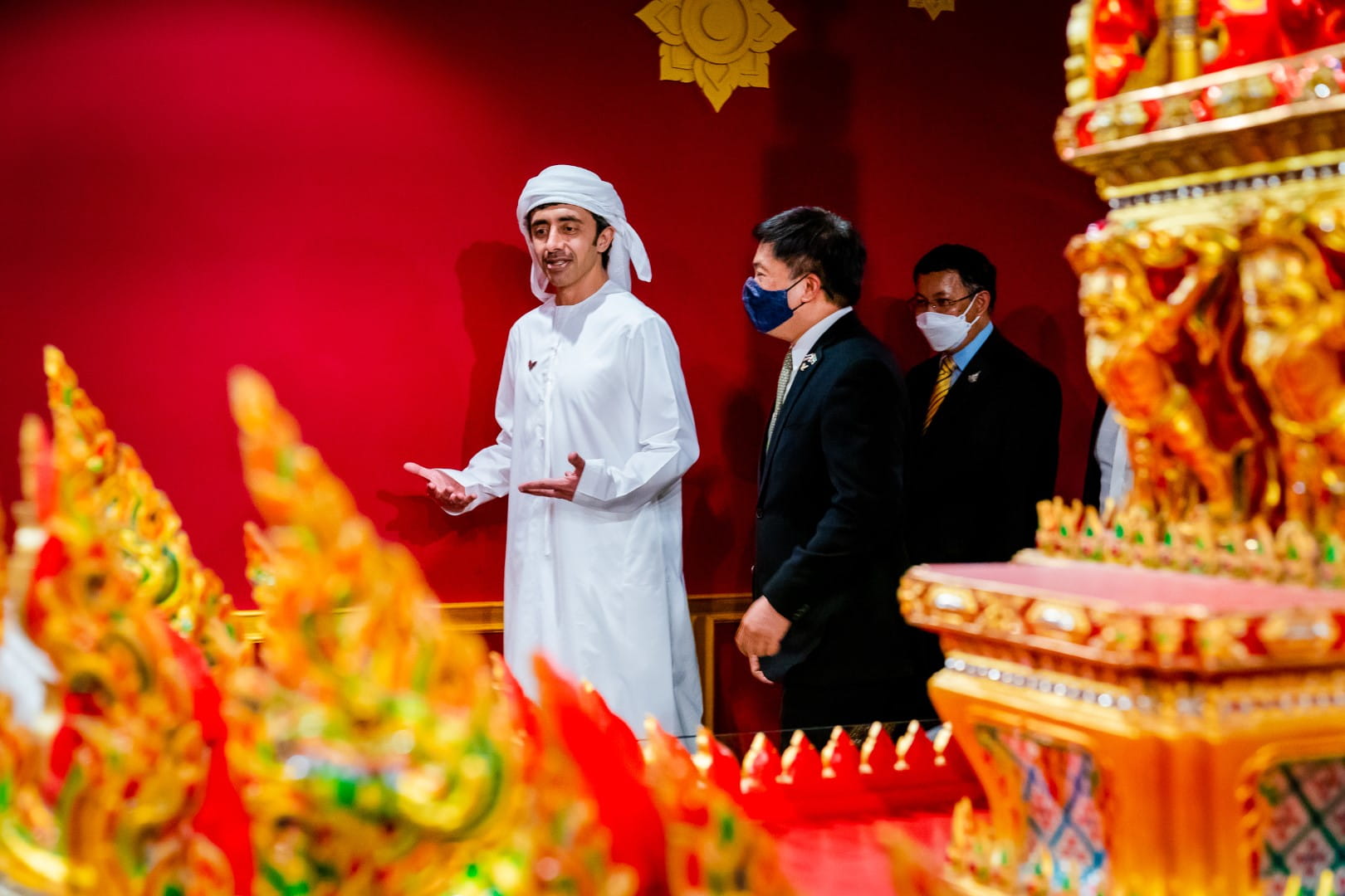 Sheikh Abdullah's next stop was the Thailand Pavilion at the Mobility District. He was briefed about the pavilion's design, inspired by the traditional floral garlands used in Thailand to welcome houseguests, the structure’s design symbolises hospitality, luck and respect.