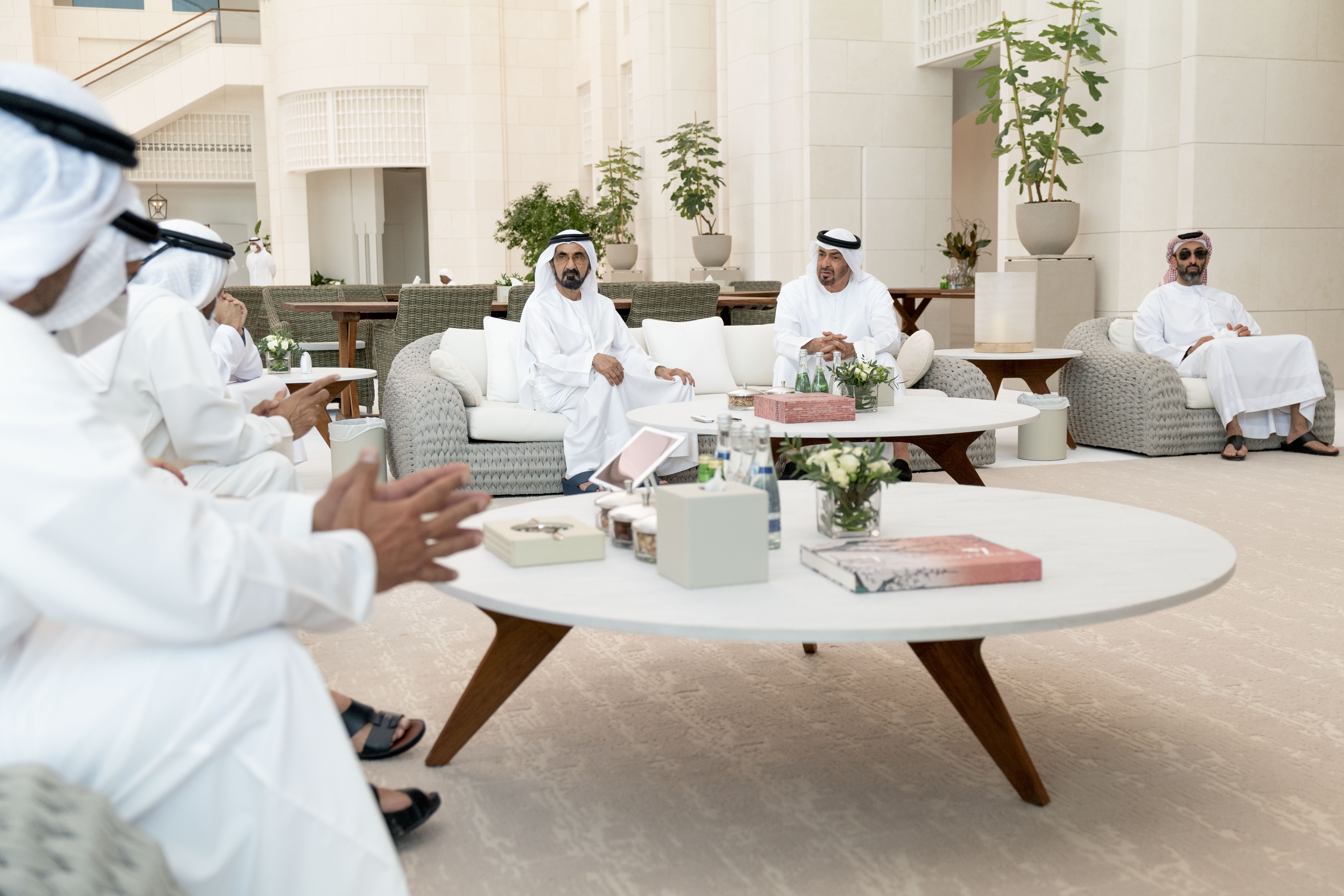 During the meeting, Their Highnesses exchanged friendly conversations and addressed several issues concerning the nation and its citizens, most notably those related to providing Emirati citizens with decent lives and achieving their happiness and social stability under the leadership of President His Highness Sheikh Khalifa bin Zayed Al Nahyan, as well as the national efforts to address the COVID-19 pandemic, reduce its repercussions on different areas of life and ensure the return to normalcy as soon as possible.