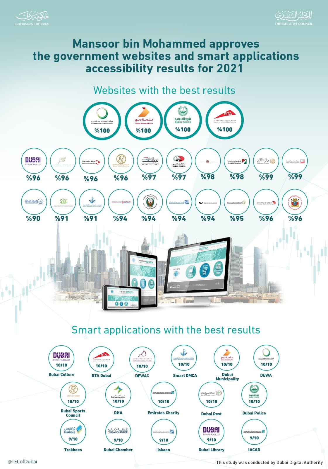 · Dubai Police, DEWA and Dubai Municipality have enhanced their digital channels to achieve a 100% conformity rate