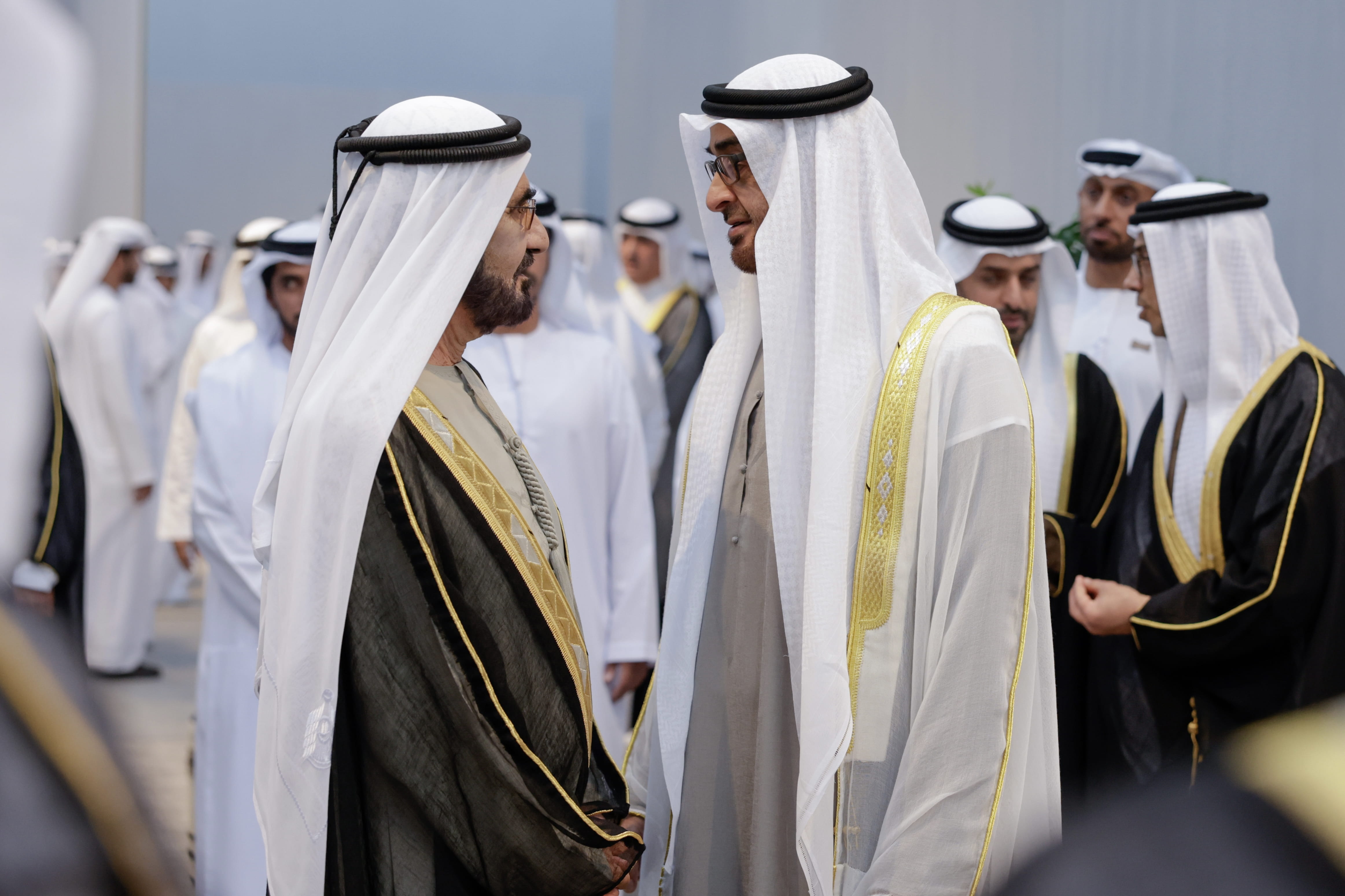 Also attending were His Highness Sheikh Mohammed bin Rashid Al Maktoum, Vice President, Prime Minister and Ruler of Dubai; H.H. Dr. Sheikh Sultan bin Muhammad Al Qasimi, Supreme Council Member and Ruler of Sharjah; H.H. Sheikh Humaid bin Rashid Al Nuaimi, Supreme Council Member and Ruler of Ajman; H.H. Sheikh Hamad bin Mohammed Al Sharqi, Supreme Council Member and Ruler of Fujairah; H.H. Sheikh Saud bin Rashid Al Mu'alla, Supreme Council Member and Ruler of Umm Al Qaiwain; and H.H. Sheikh Saud bin Saqr Al Qasimi, Supreme Council Member and Ruler of Ras Al Khaimah.