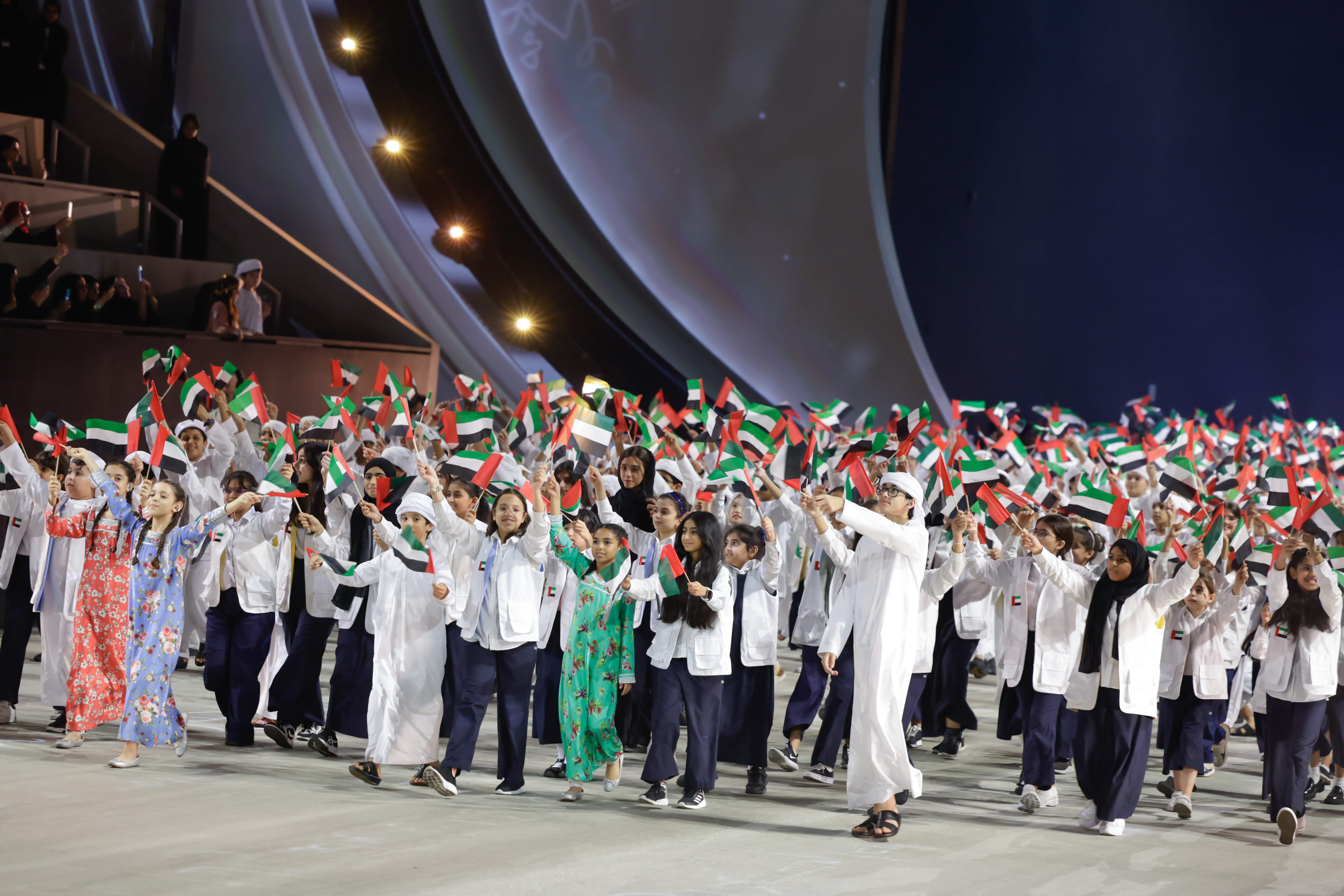 The Official Celebration kicked off to the sounds of the UAE national anthem, performed by the Royal Philharmonic Orchestra along with several Emirati musicians. This was followed by a segment commemorating the late Sheikh Khalifa bin Zayed Al Nahyan, which showcased his lasting impact as a leader, whose reign saw countless achievements in environmental preservation, sustainability, technology, economic development, education, among others.
