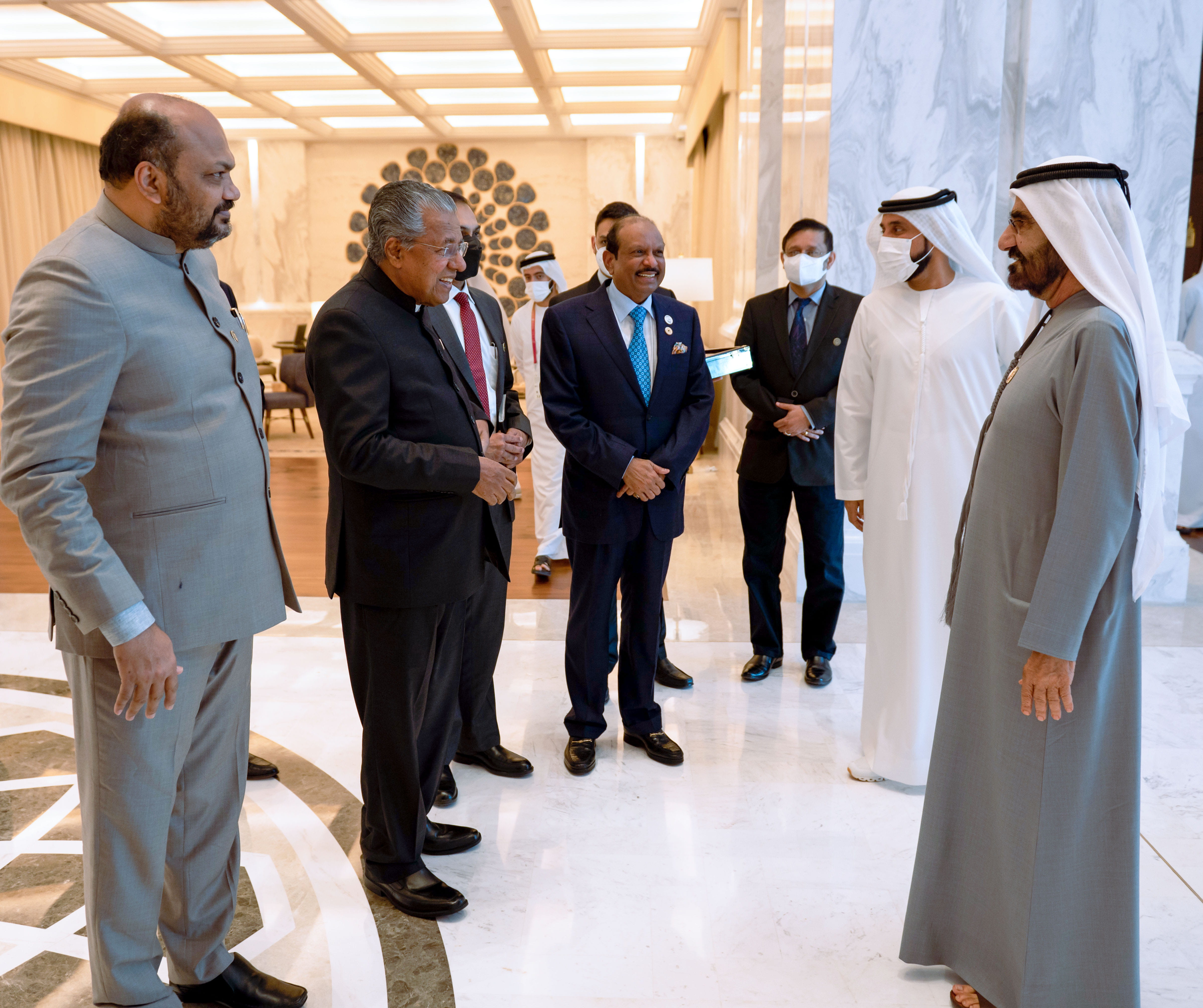 His Highness Sheikh Mohammed bin Rashid Al Maktoum, Vice President and Prime Minister of the UAE and Ruler of Dubai, today met with Pinarayi Vijayan, Chief Minister of the Indian state of Kerala, at Expo 2020 Dubai. The meeting was attended by His Highness Sheikh Maktoum bin Mohammed bin Rashid Al Maktoum, Deputy Ruler of Dubai, Deputy Prime Minister and Minister of Finance.