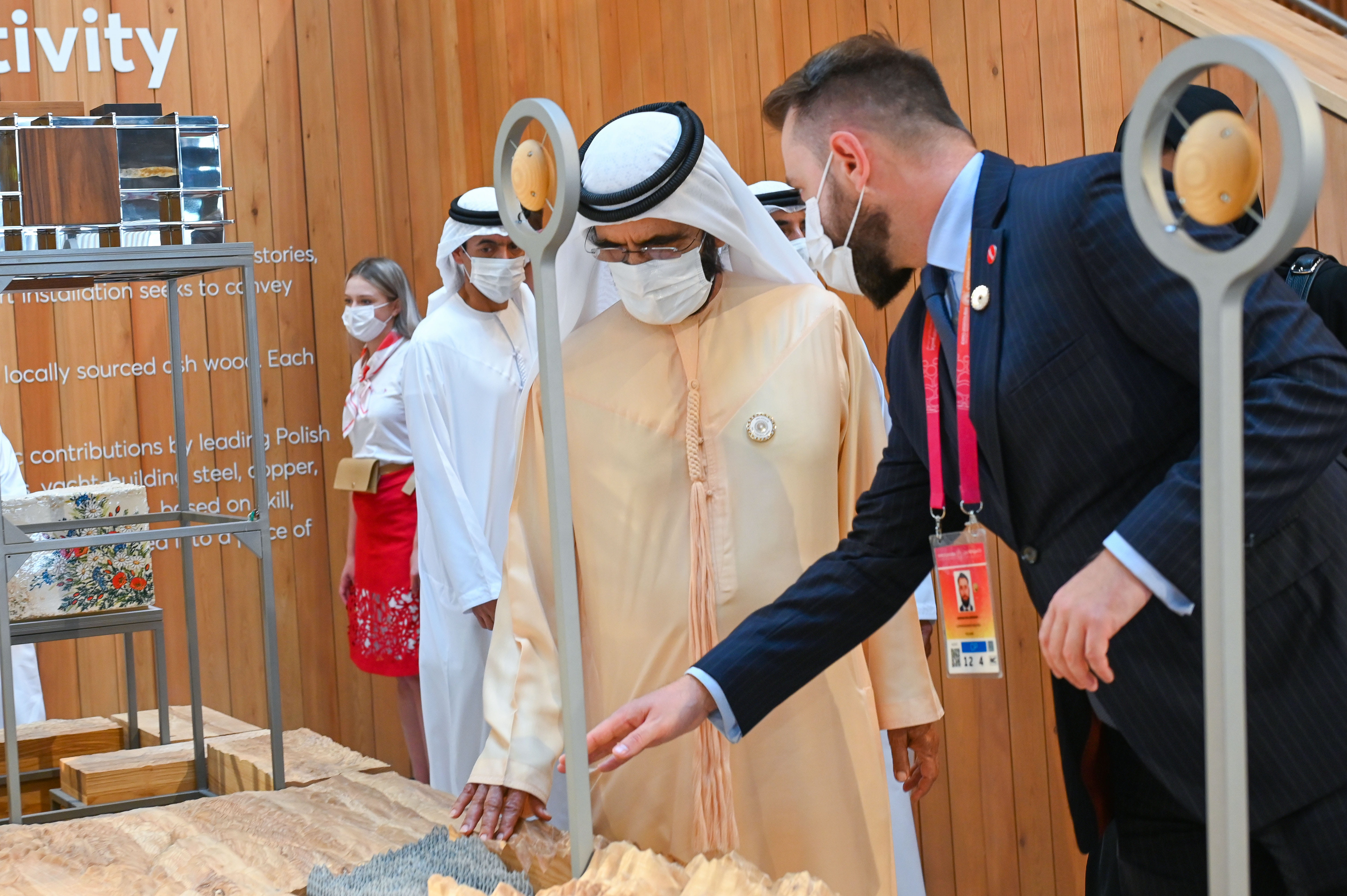 HH Sheikh Mohammed also visited the pavilion of Poland, located in the Mobility District. The pavilion highlights the country's natural landscapes and ecological wonders, with a special focus on its forests, rivers and lakes, which are the breeding grounds for 25 per cent of Europe’s migratory birds.