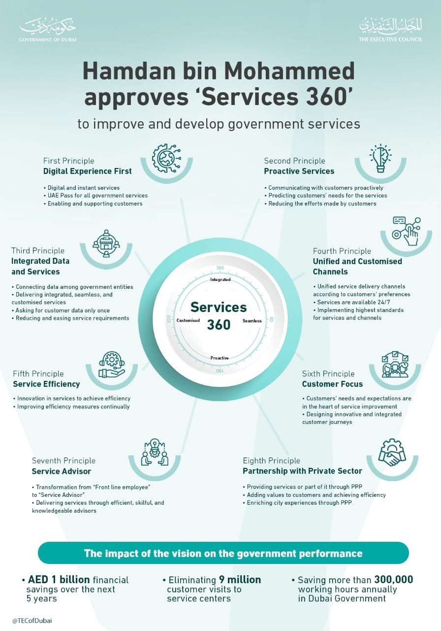 ‘Services 360’ policy seeks to redesign government services in Dubai with a fully integrated set of solutions that will meet the aspirations of Dubai’s residents and assist the government to operate as one united entity