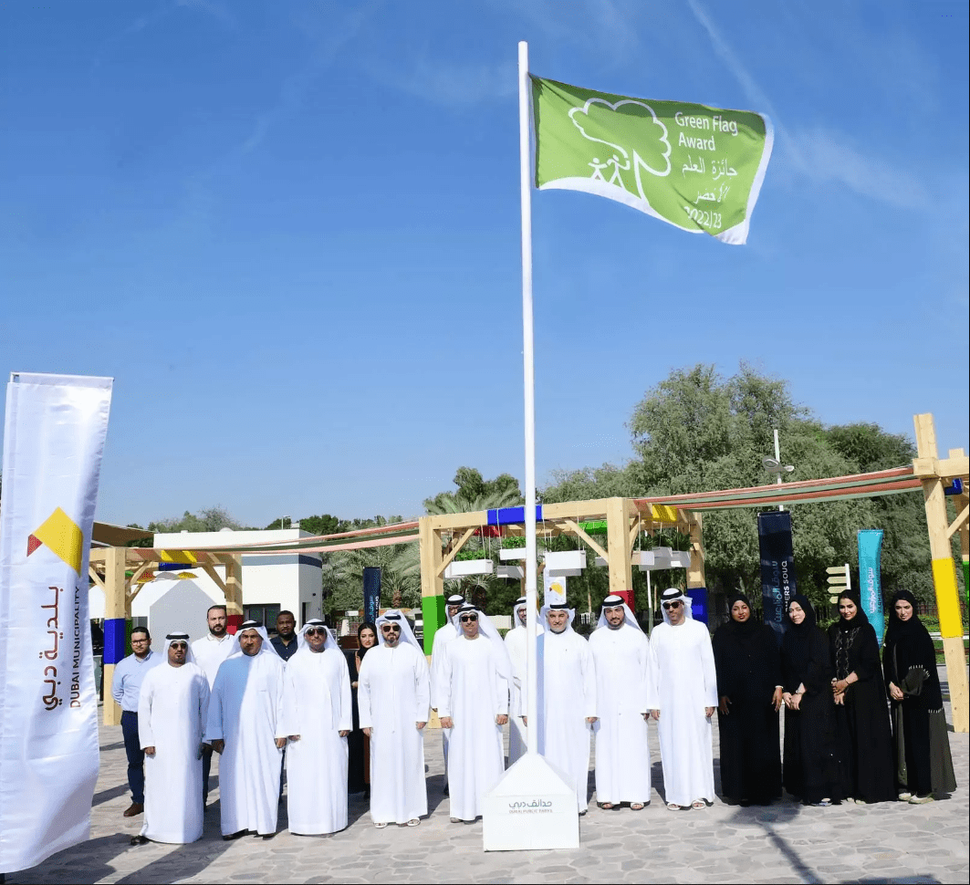 Dubai Municipality raised green flags in three parks in the Emirate, in celebration of receiving the Green Flag Award, which recognises parks and resorts worldwide that are dedicated to adhering to the best international standards in the field of enhancing the efficiency of public parks management. The Municipality raised the green flags in Al Nakheel Park, Al Barsha Pond Park, and Al Nahda Pond Park.