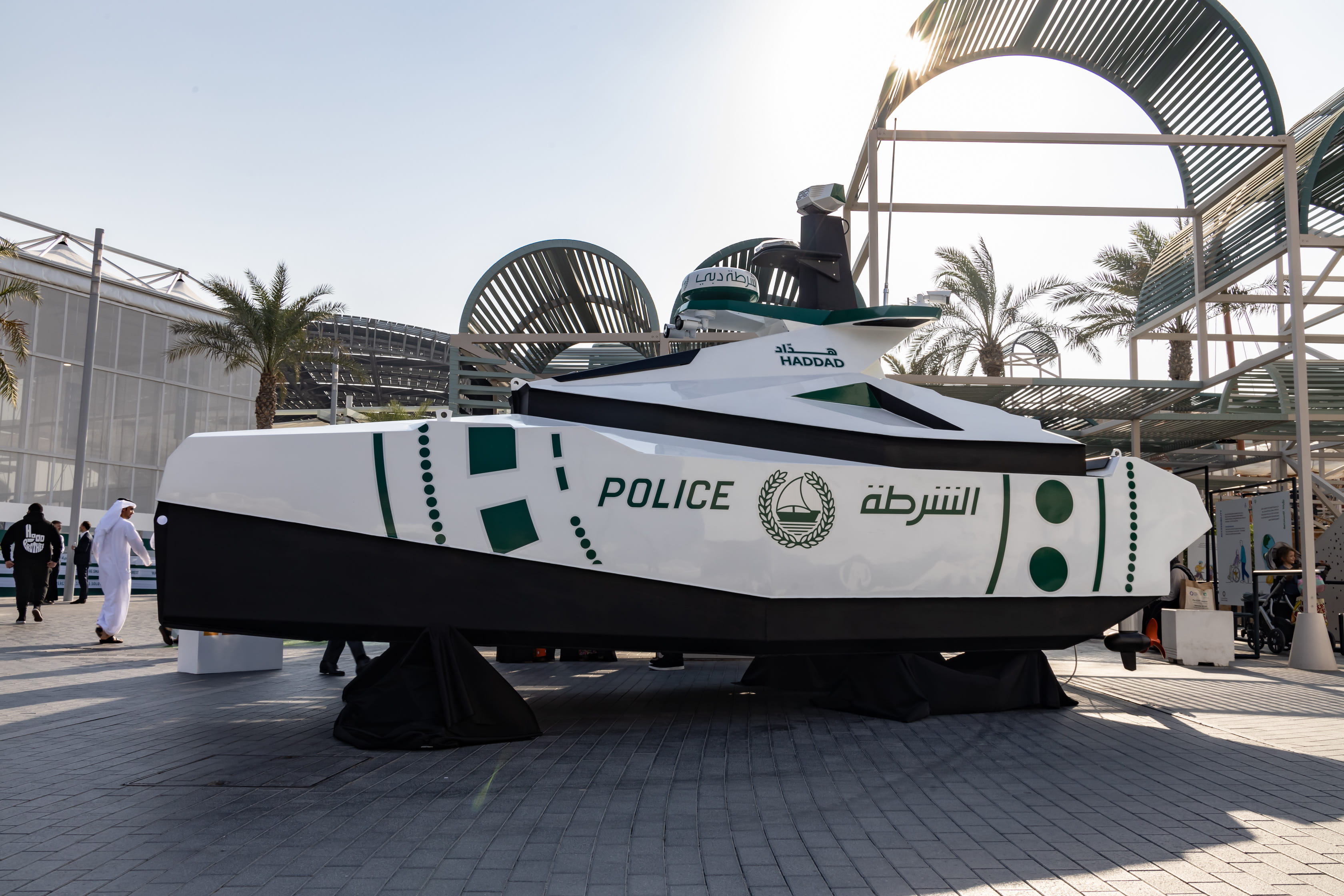 The Dubai Police's stand also showcases the eco-friendly smart police boat Haddad, the first of its kind in the region and a global pioneer in various aspects. This project involves inventing an intelligent security boat powered by clean energy by talented young Emiratis.