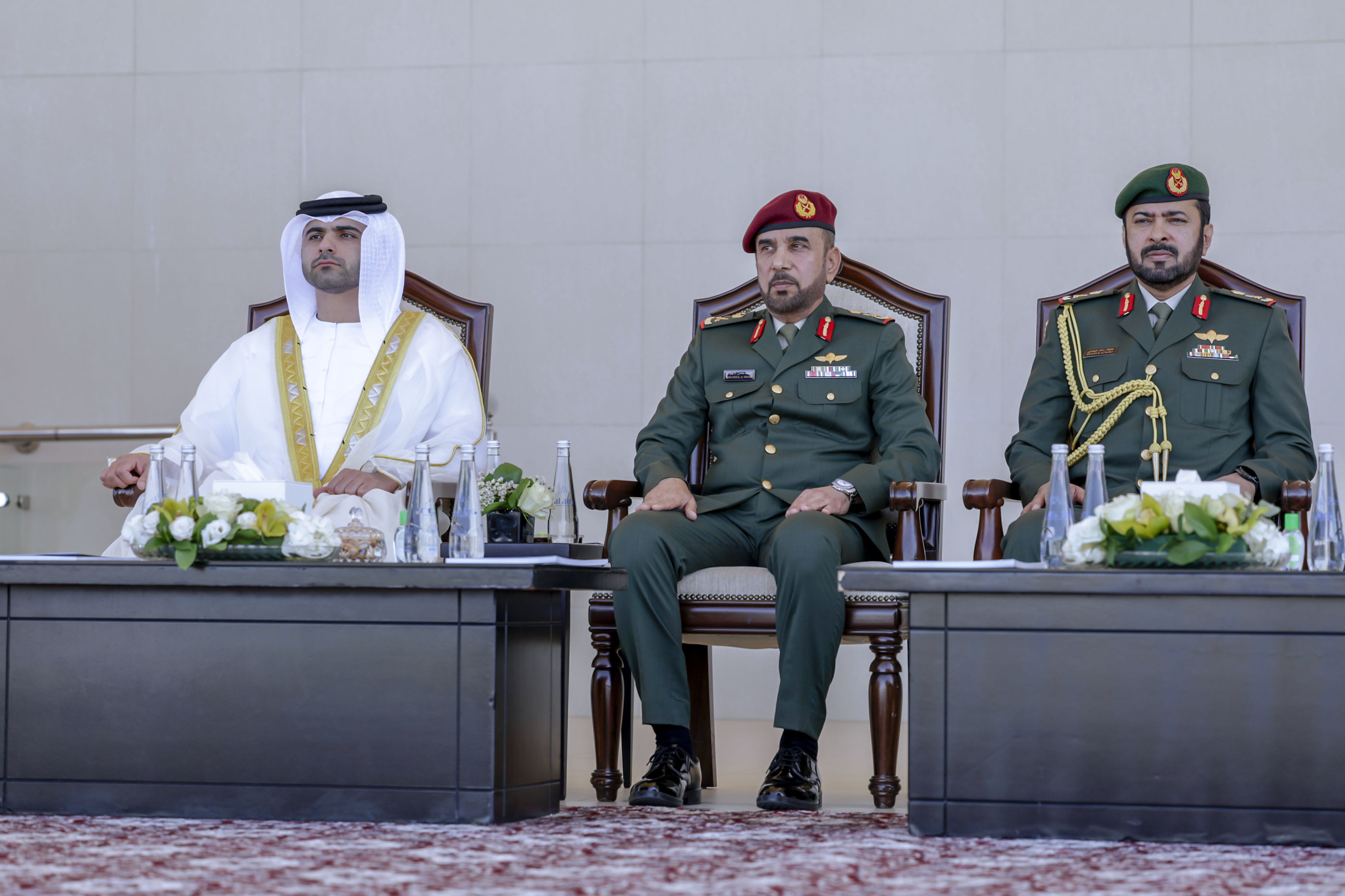 His Highness also took a photo with the graduates to mark the occasion, along with HH Sheikh Mansoor bin Mohammed bin Rashid Al Maktoum, Chairman of the Dubai Border Security Council; His Excellency Mohammed bin Ahmed Al Bowardi, Minister of State for Defence Affairs; His Excellency Staff Lieutenant General Engineer Issa Saif Mohammed Al Mazrouei; and Brigadier Amer Mohammed Al Neyadi, Commander of the Zayed II Military College.