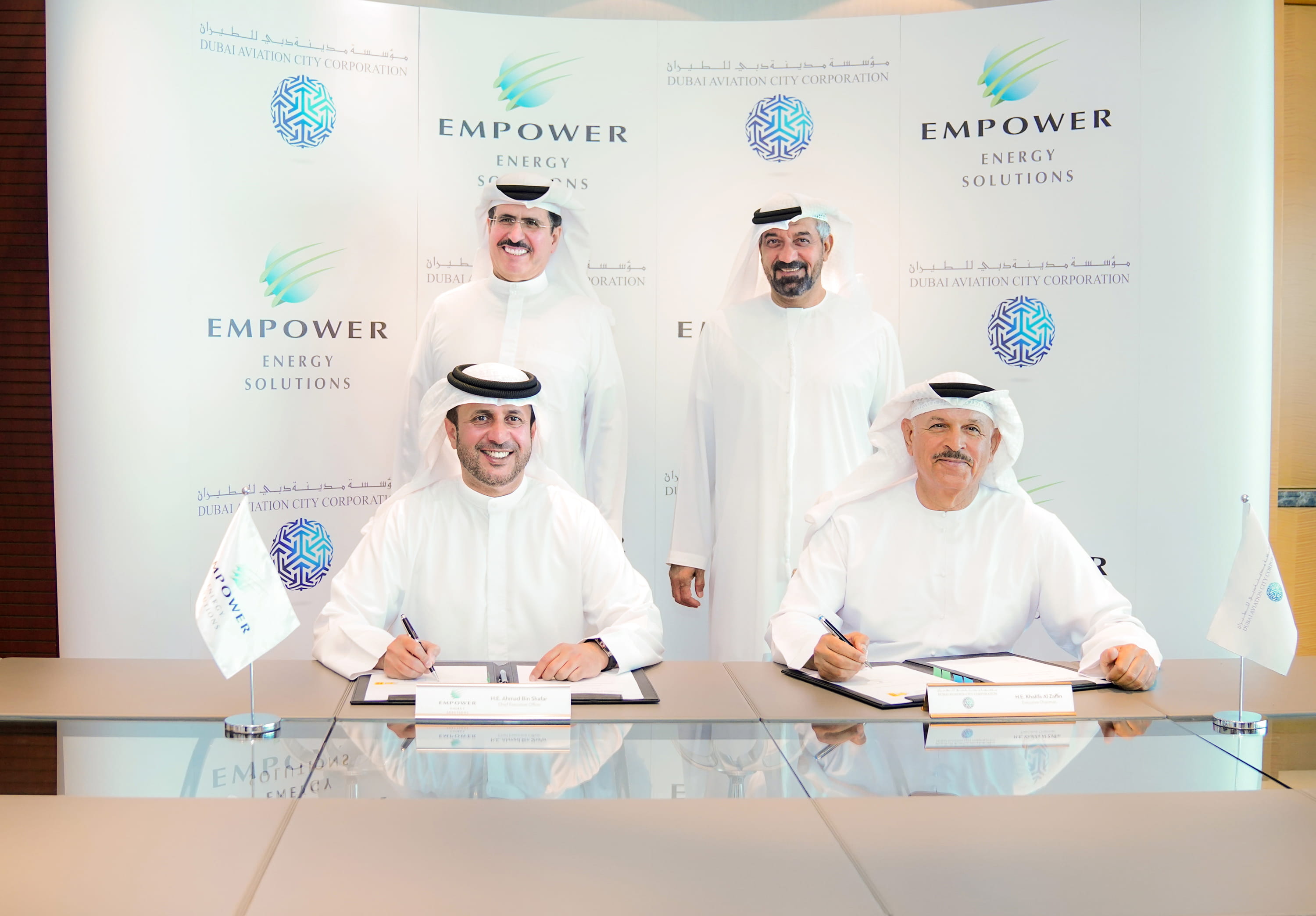 His Excellency Saeed Mohammed Al Tayer, Managing Director and CEO of Dubai Electricity and Water Authority PJSC (DEWA) and Chairman of Empower was also present at the acquisition of the rights from Dubai Aviation City Corporation (DACC) by Empower which took place between His Excellency Khalifa Al Zaffin, Executive Chairman of Dubai Aviation City Corporation (DACC) and Dubai South, and His Excellency Ahmad Bin Shafar, CEO of Empower.