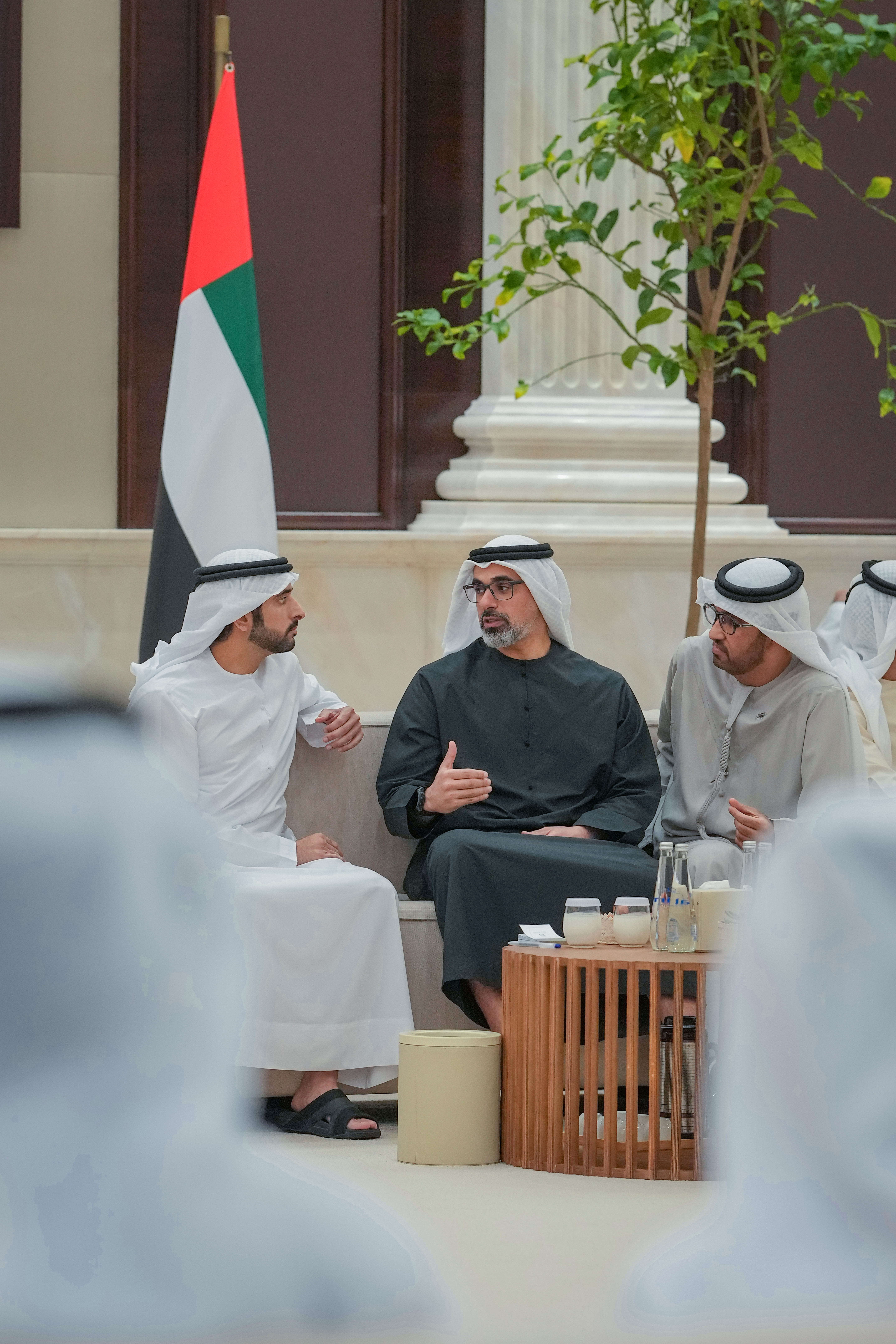 Their Highnesses and accompanying guests offered prayers for the enduring health and wellness of our leadership on this occasion, and to uphold the blessings of security, stability, and ongoing prosperity of our nation, under the guidance of President His Highness Sheikh Mohamed bin Zayed Al Nahyan.