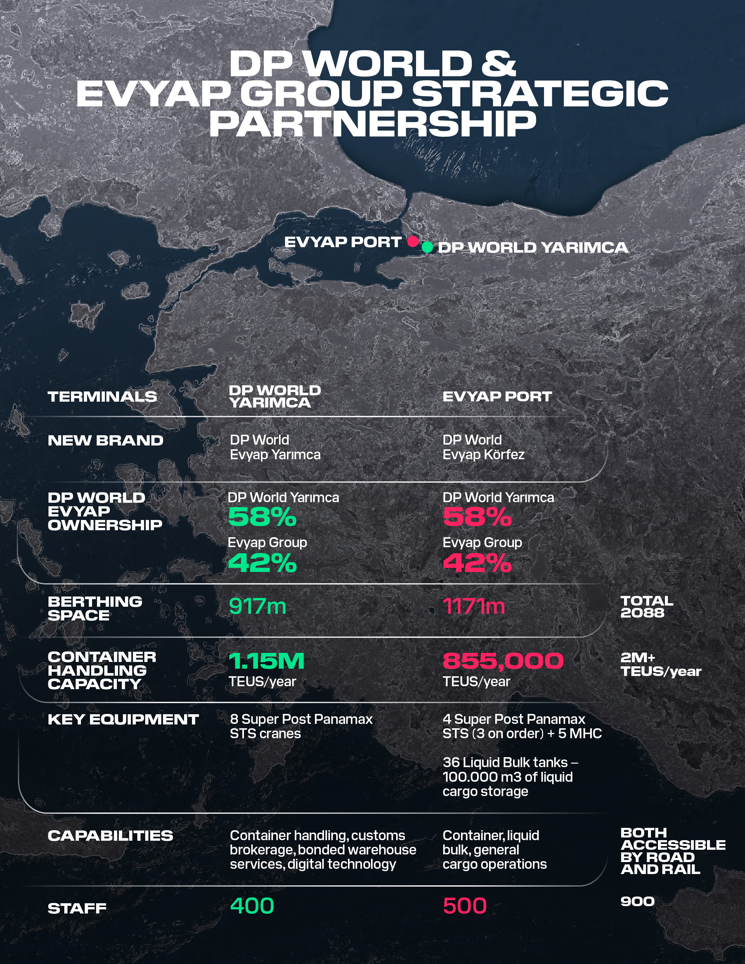 The synergy of DP World’s extensive experience in container handling, customs brokerage, and bonded warehouse services with Evyapport’s expertise in container, liquid bulk, and general cargo operations is poised to offer unparalleled service. This comprehensive suite of solutions, enhanced by cutting-edge digital technologies, positions DP World Evyap as a key player in the region's sophisticated logistics landscape, promising to boost Türkiye’s export and import volumes and catalyze the growth of new industries.