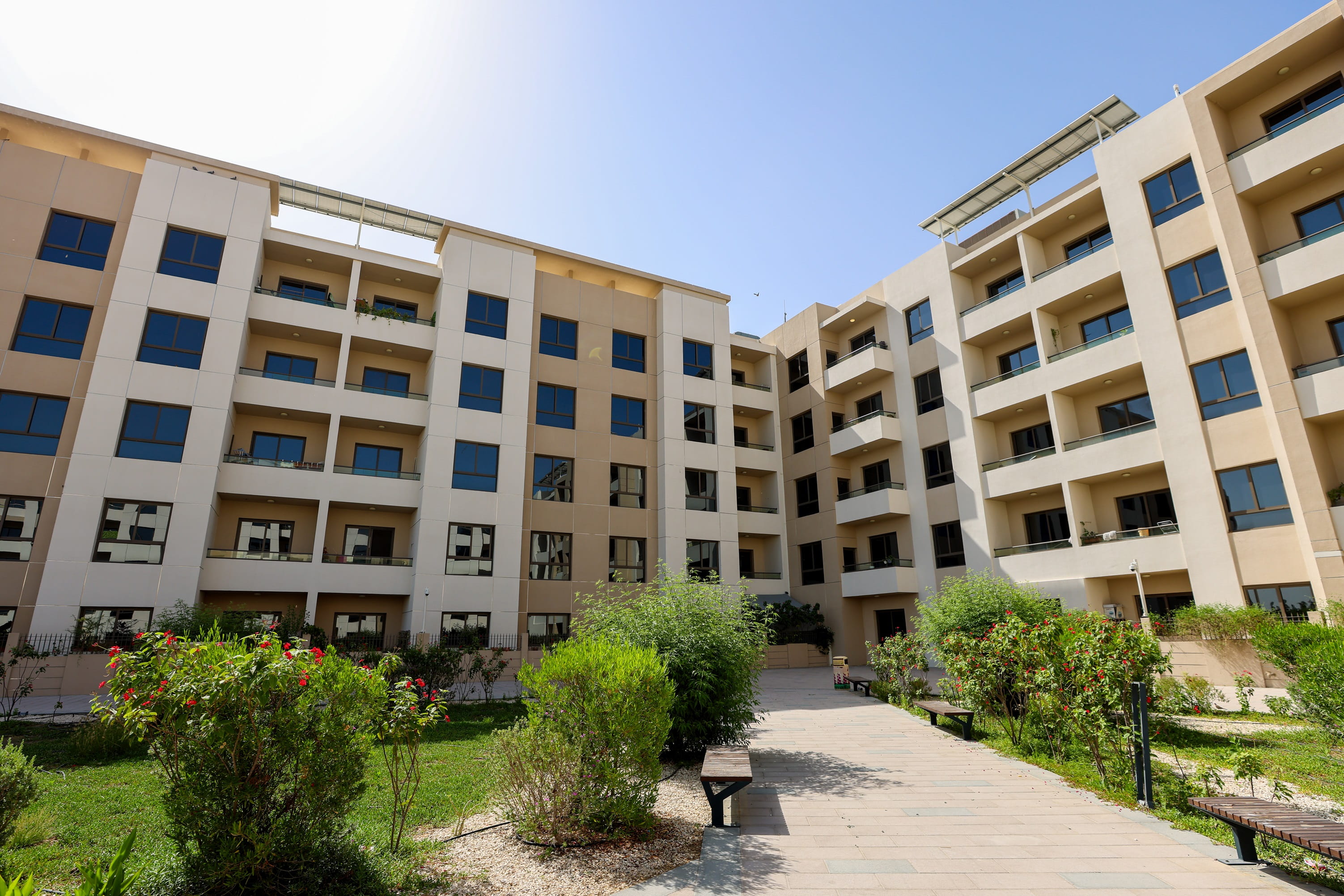 DEWA’s Accommodation Complex in Warsan, which is comprised of a building for families and another for bachelors, achieved 61% water savings and 28% energy savings. The Complex has reduced leakage and produces 10% of the energy it needs using renewable sources. The furniture used in the Complex has received a certificate from the Forest Stewardship Council (FSC), an international non-profit organisation that promotes environmentally appropriate, and socially beneficial viable management of the forests. The furniture contains low volatile organic compounds (Low VOC) materials, enhancing the quality of the building’s internal environment.