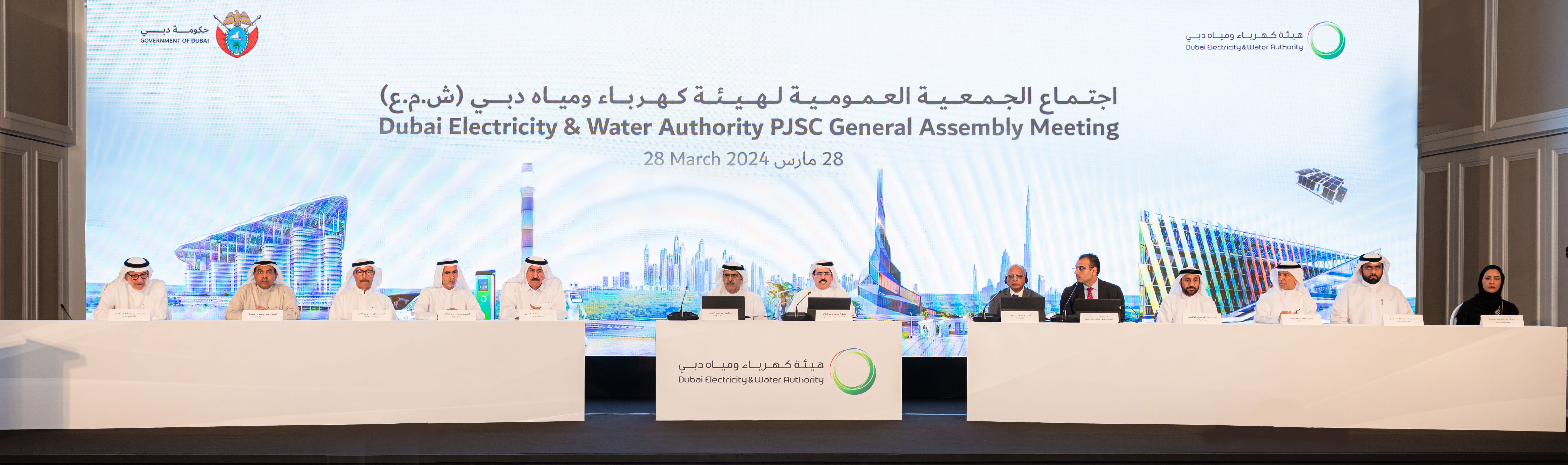 The meeting, chaired by HE Matar Humaid Al Tayer, Chairman of the Board of Directors of DEWA, was attended by HE Saeed Mohammed Al Tayer, MD&CEO of DEWA and Members of the Board of Directors of DEWA as well as 85.9% of the shareholders. The assembly was held on Thursday (28th March 2024) at the Kempinski Boulevard Hotel in Dubai as well as virtually.