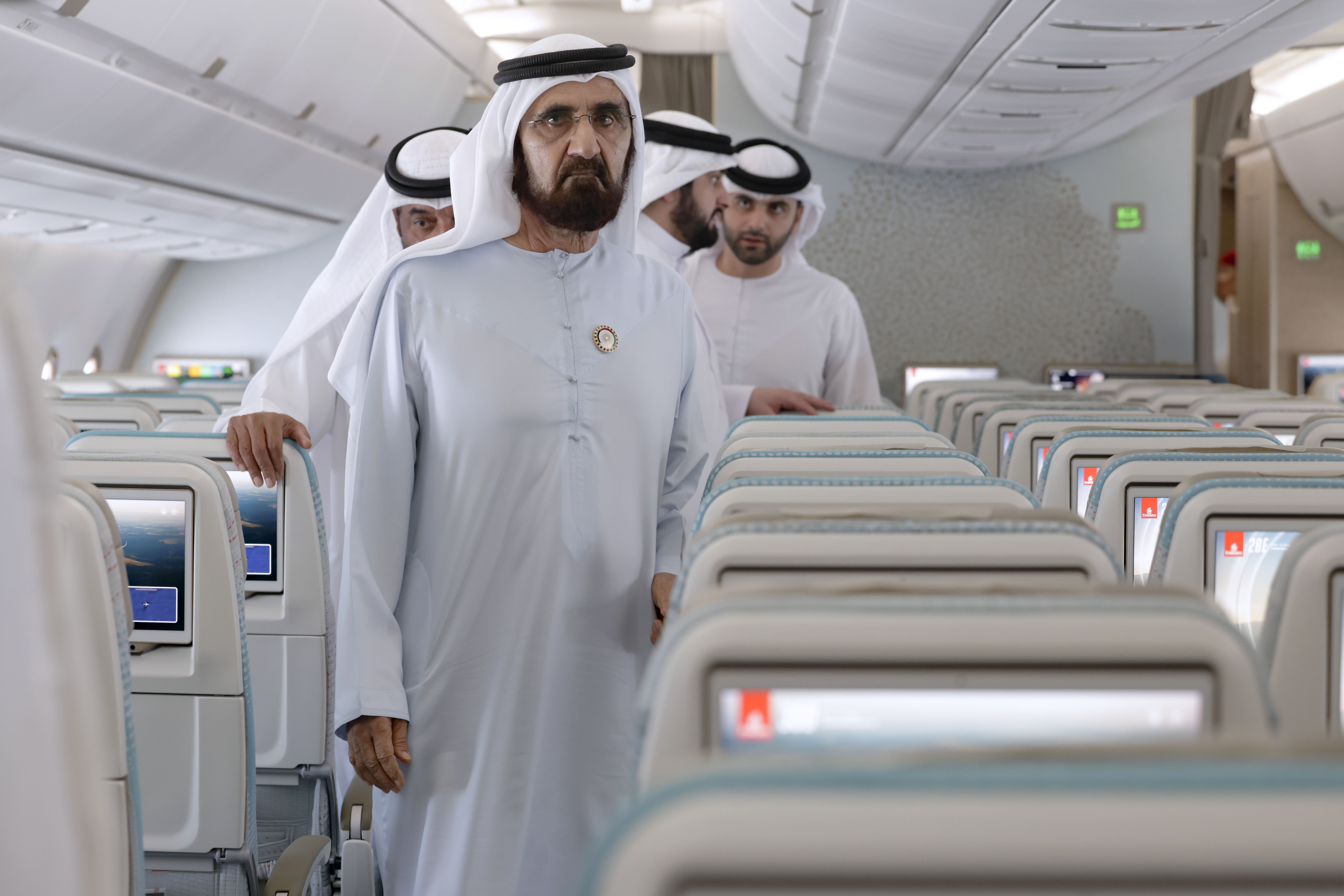 He was accompanied by His Highness Sheikh Ahmed bin Mohammed bin Rashid Al Maktoum, Second Deputy Ruler of Dubai; His Highness Sheikh Ahmed bin Saeed Al Maktoum, President of Dubai Civil Aviation Authority, Chairman of Dubai Airports, and Chairman and Chief Executive of Emirates Airline and Group; and His Highness Sheikh Mansoor bin Mohammed bin Rashid Al Maktoum, Chairman of the Dubai Ports and Borders Security Council.