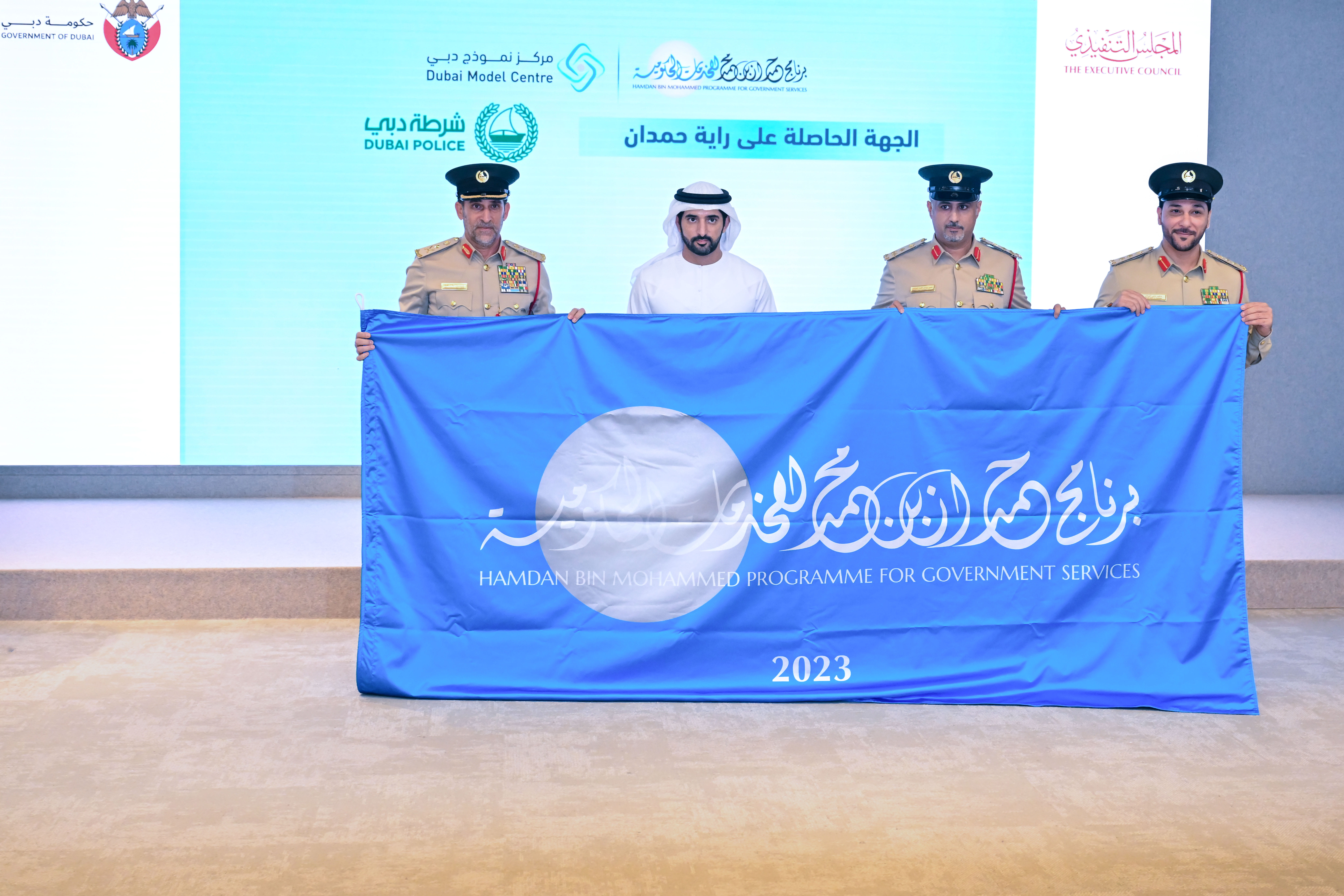 His Highness Sheikh Hamdan bin Mohammed bin Rashid Al Maktoum, Crown Prince of Dubai, Deputy Prime Minister and Minister of Defence of the UAE, and Chairman of The Executive Council of Dubai, said Dubai continues to reinforce its leadership in shaping the future of government services. He was speaking after presenting Dubai Police with the Flag of the Hamdan Bin Mohammed Program for Government Services, the ‘Hamdan Flag,’ and reviewing the results of the first phase of the Services 360 Policy.