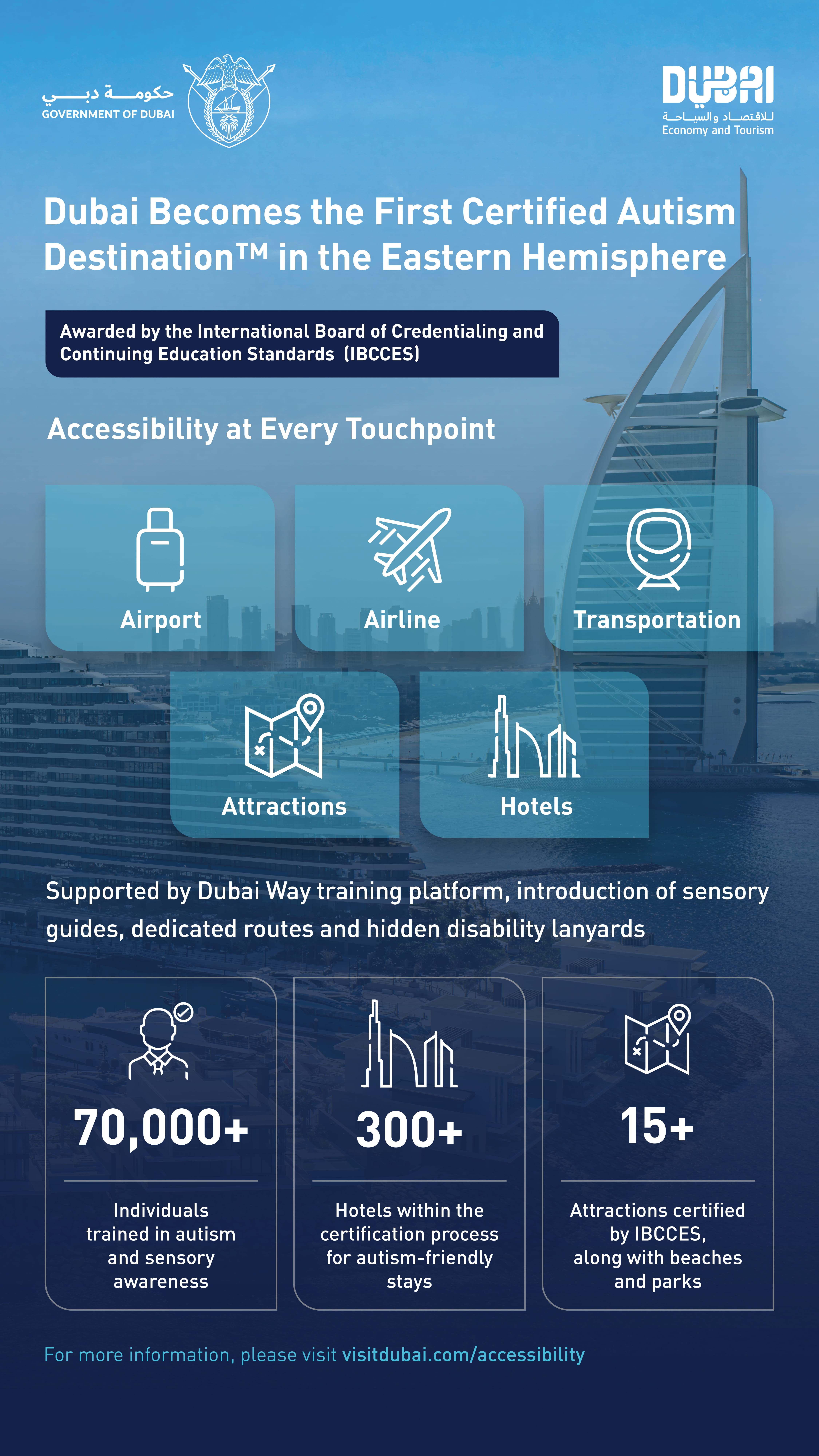 His Excellency Issam Kazim, CEO of the Dubai Corporation for Tourism and Commerce Marketing (DCTCM), part of the Dubai Department of Economy and Tourism (DET), said: “Dubai’s designation as a Certified Autism Destination is a landmark moment in our accessibility journey, demonstrating a collective commitment to not only consistently developing infrastructure, but also enhancing skills and services across the city. Under the guidance of our visionary leadership, we are dedicated to further elevating the experience in Dubai for all residents and visitors, with accessibility as a core priority, and this recognition has been made possible thanks to the steadfast efforts and support of all our partners, including IBCCES, the aviation ecosystem, hotels, and attractions. This also marks another important step towards achieving the goals of the Dubai Economic Agenda D33, to further consolidate Dubai’s position as a leading global destination for business and leisure, and aligns with the priorities of the UAE Year of Community. As we continue to innovate and expand our offerings, we remain focused on making Dubai the best city to visit, live, and work in - for everyone.”