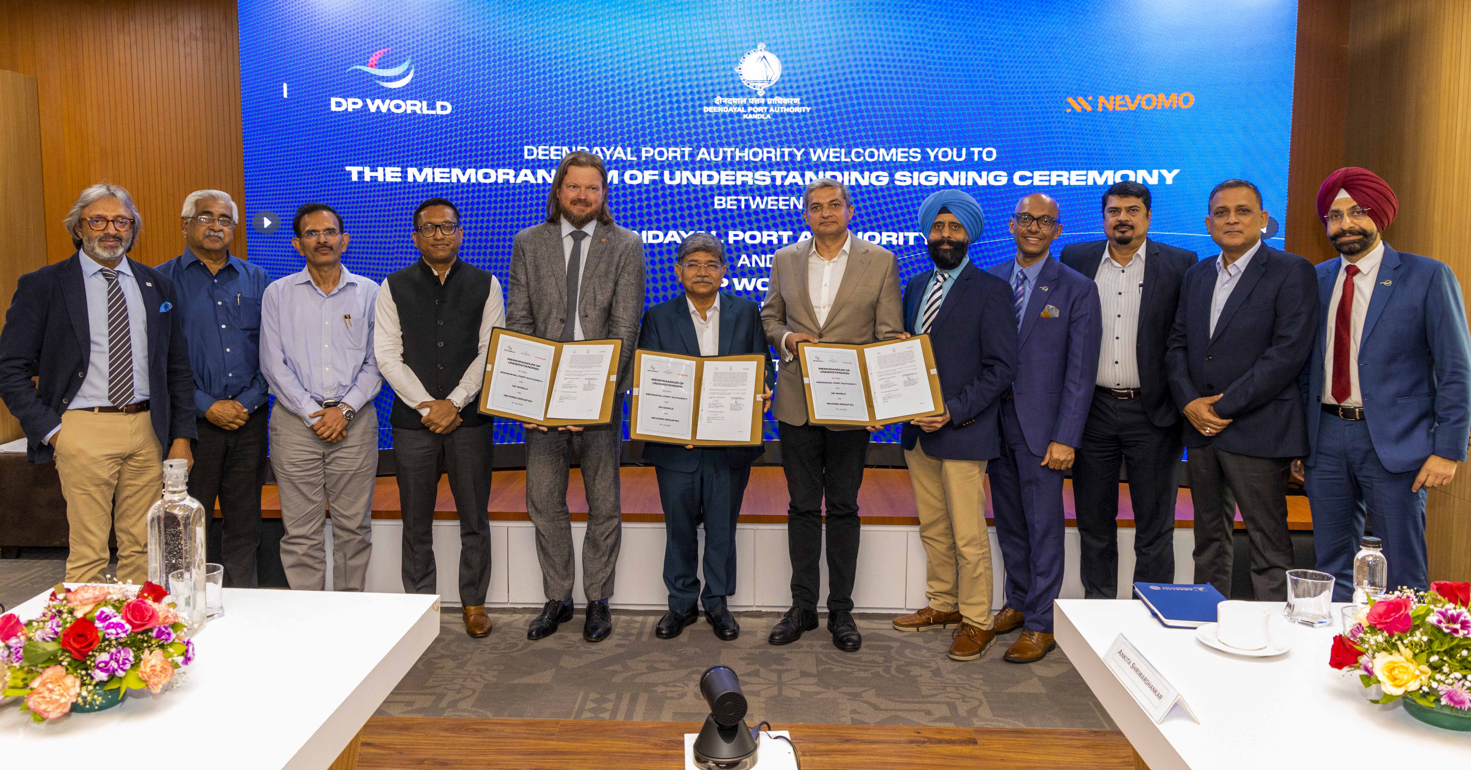 The MoU was signed by Shri Sushil Kumar Singh, IRSME, Chairman of Deendayal Port Authority (DPA), Rizwan Soomar, CEO & Managing Director, Middle East, North Africa, India Subcontinent, DP World, and Przemek (Ben) Paczek CEO Nevomo Group BV along with other senior dignitaries in Kandla, Gujarat, on 15th July 2025.
