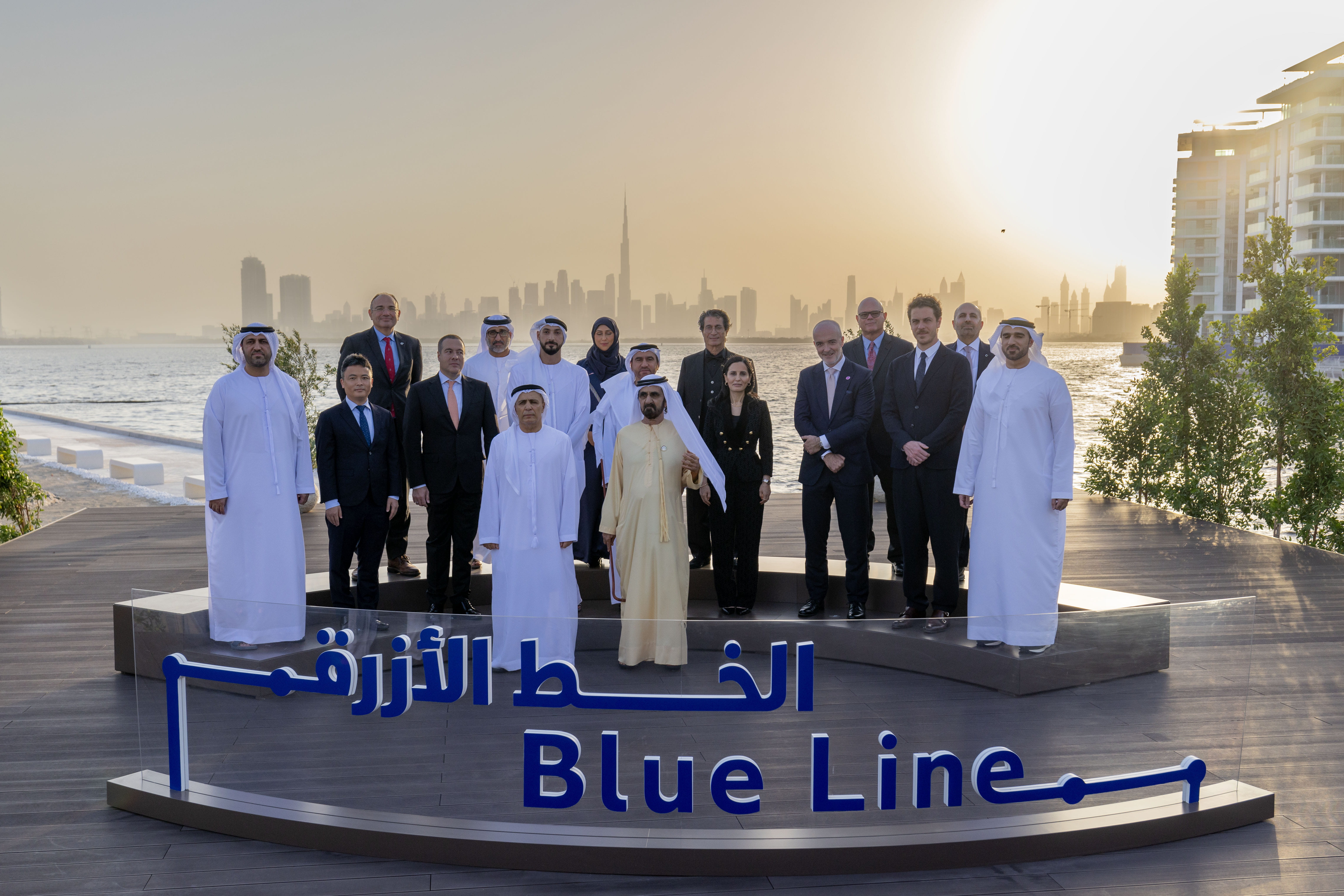 His Highness Sheikh Mohammed bin Rashid Al Maktoum, Vice President and Prime Minister of the UAE, and Ruler of Dubai, attended the foundation stone laying ceremony of the Dubai Metro Blue Line, a key milestone in the expansion of the city’s public transportation network. Spanning 30 km and comprising 14 stations, the new line is set to transform mobility across nine key districts, projected to be home to over one million residents, as outlined in the Dubai 2040 Urban Master Plan.