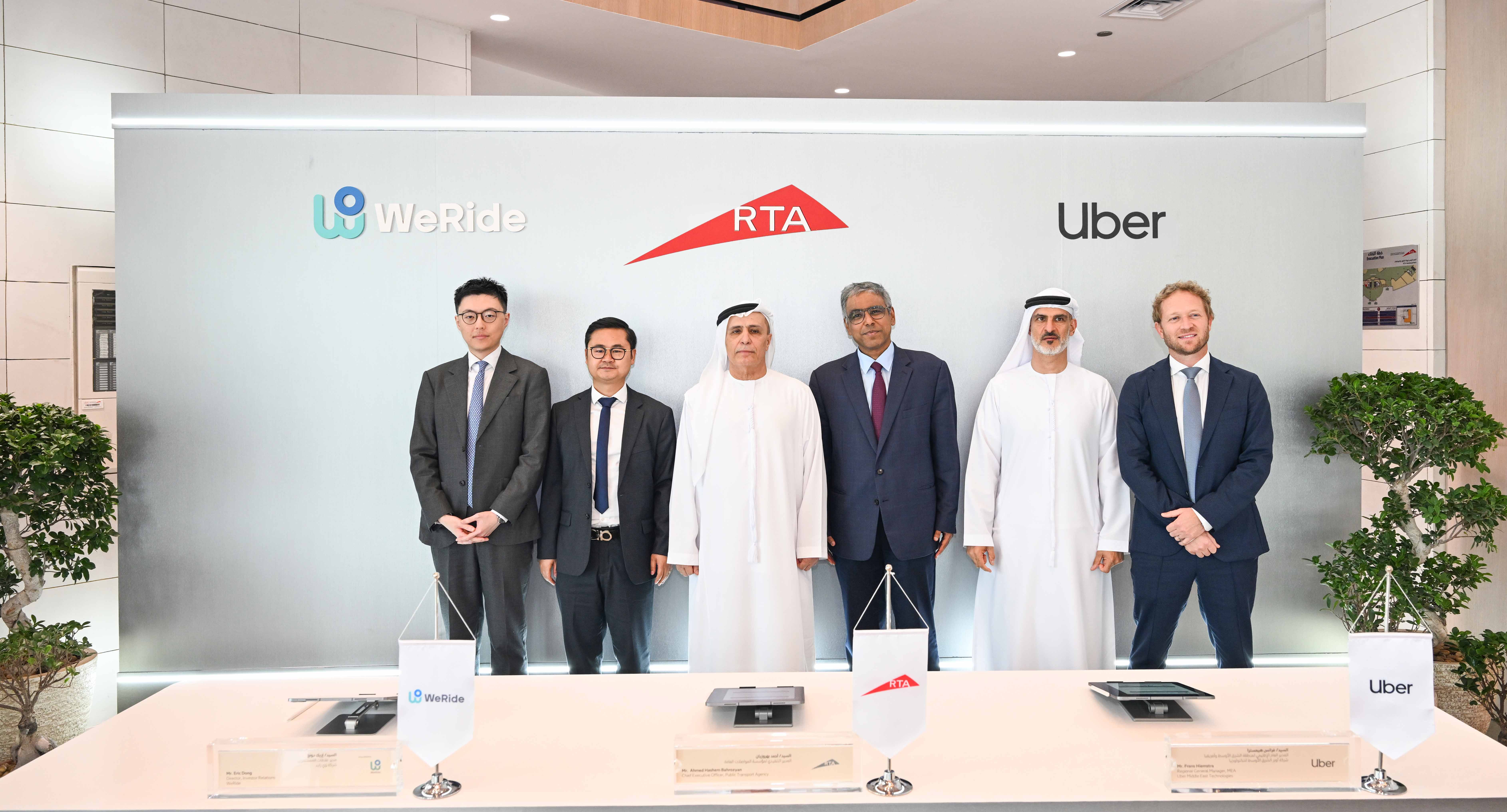 His Excellency Mattar Al Tayer, Director General, Chairman of the Board of Executive Directors of Dubai’s Roads and Transport Authority (RTA), along with Mr. Madhu Kannan, Chief Business Officer at Uber, and Mr. Ryan Zhan, Regional General Manager of Middle East and Africa at WeRide attended the MoU signing ceremony. The agreement was signed for RTA by Mr. Ahmed Hashim Bahrozyan, CEO of the Public Transport Agency, RTA; for Uber by Mr. Frans Hiemstra, Regional General Manager for the Middle East and Africa at Uber; and for WeRide by Mr. Eric Dong, Director of Capital Markets and Corporate Development at WeRide, in the presence of senior officials from all parties.