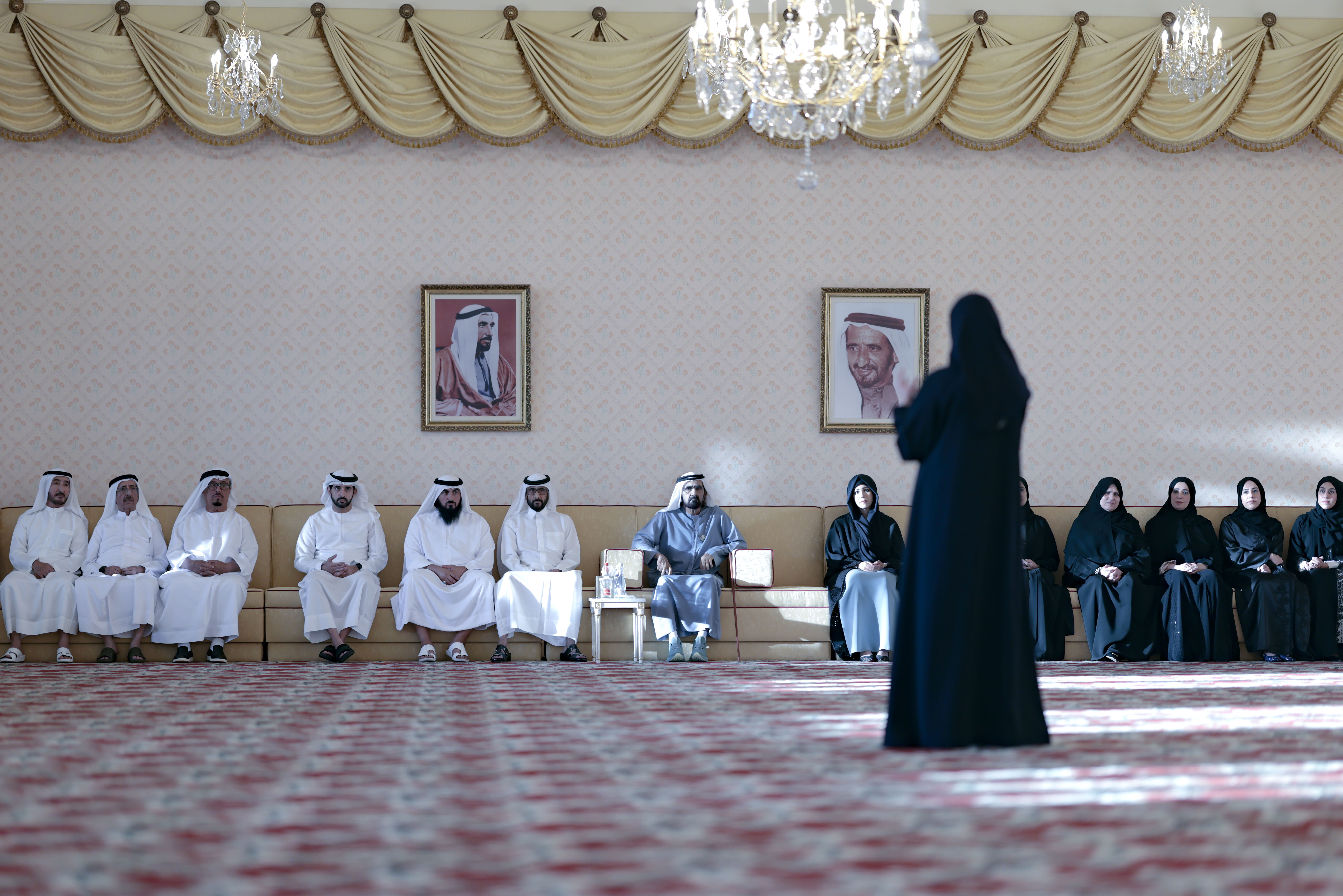The meeting was also attended by Lieutenant General H.H. Sheikh Ahmed bin Rashid Al Maktoum, Deputy Chairman of Chief of Police and Public Security in Dubai; His Highness Sheikh Ahmed bin Saeed Al Maktoum, President of Dubai Civil Aviation Authority, Chairman of Dubai Airports, and Chairman and Chief Executive of Emirates Airline and Group; His Highness Sheikh Mansoor bin Mohammed bin Rashid Al Maktoum, President of the UAE National Olympic Committee; and Her Highness Sheikha Latifa bint Mohammed bin Rashid Al Maktoum, Chairperson of the Dubai Culture and Arts Authority. The gathering was also attended by a number of Sheikhs, Ministers, Directors General, members of the Federal National Council, dignitaries, and investors. His Highness engaged in discussions with attendees, focusing on the UAE's sustainable development, economic progress, and the private sector's role in driving growth and innovation.