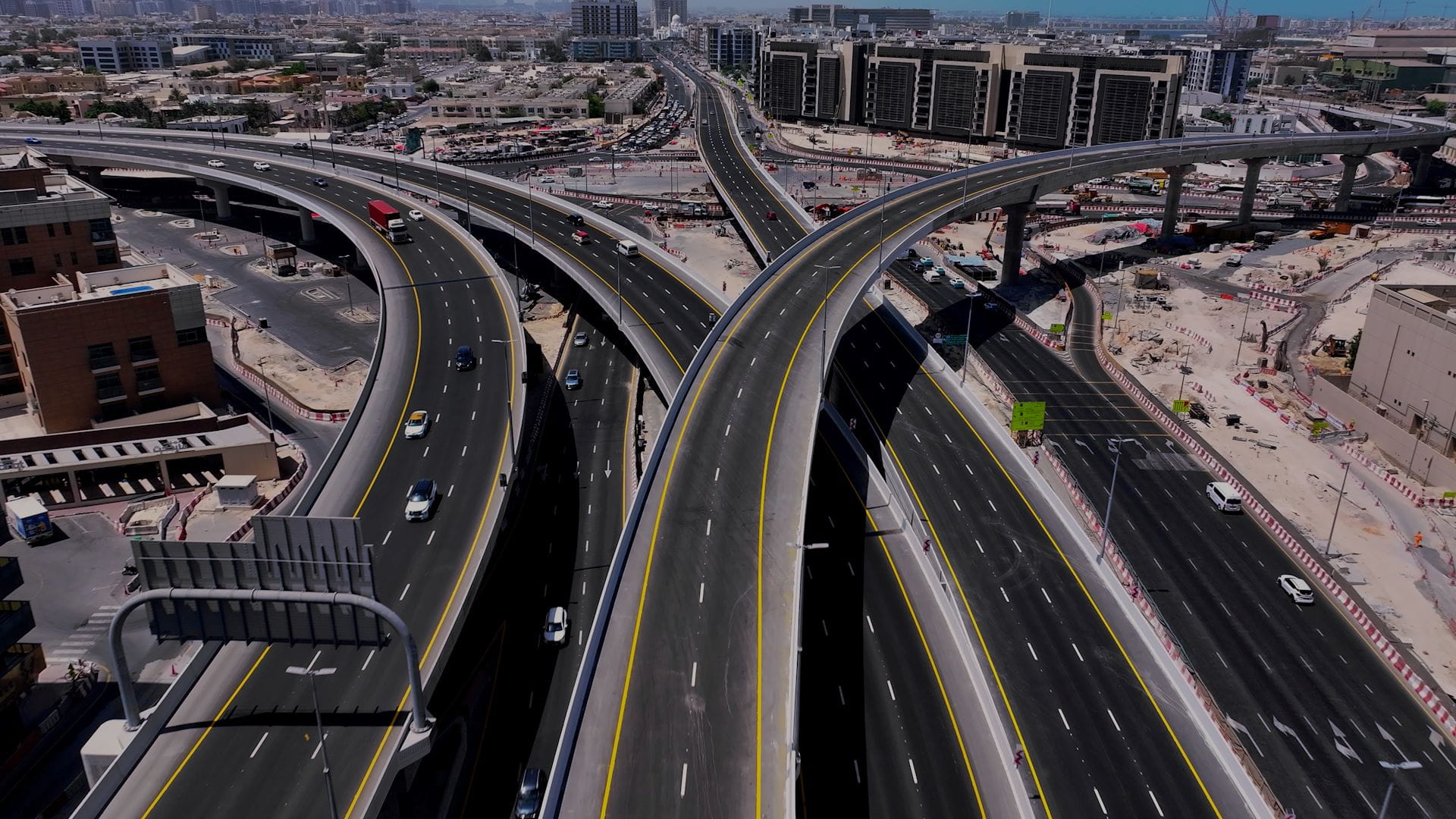 The grade-separated interchange on Al Khaleej Street was also designed to accommodate two future bridges in the direction of Abu Bakr Al Siddiq Street.