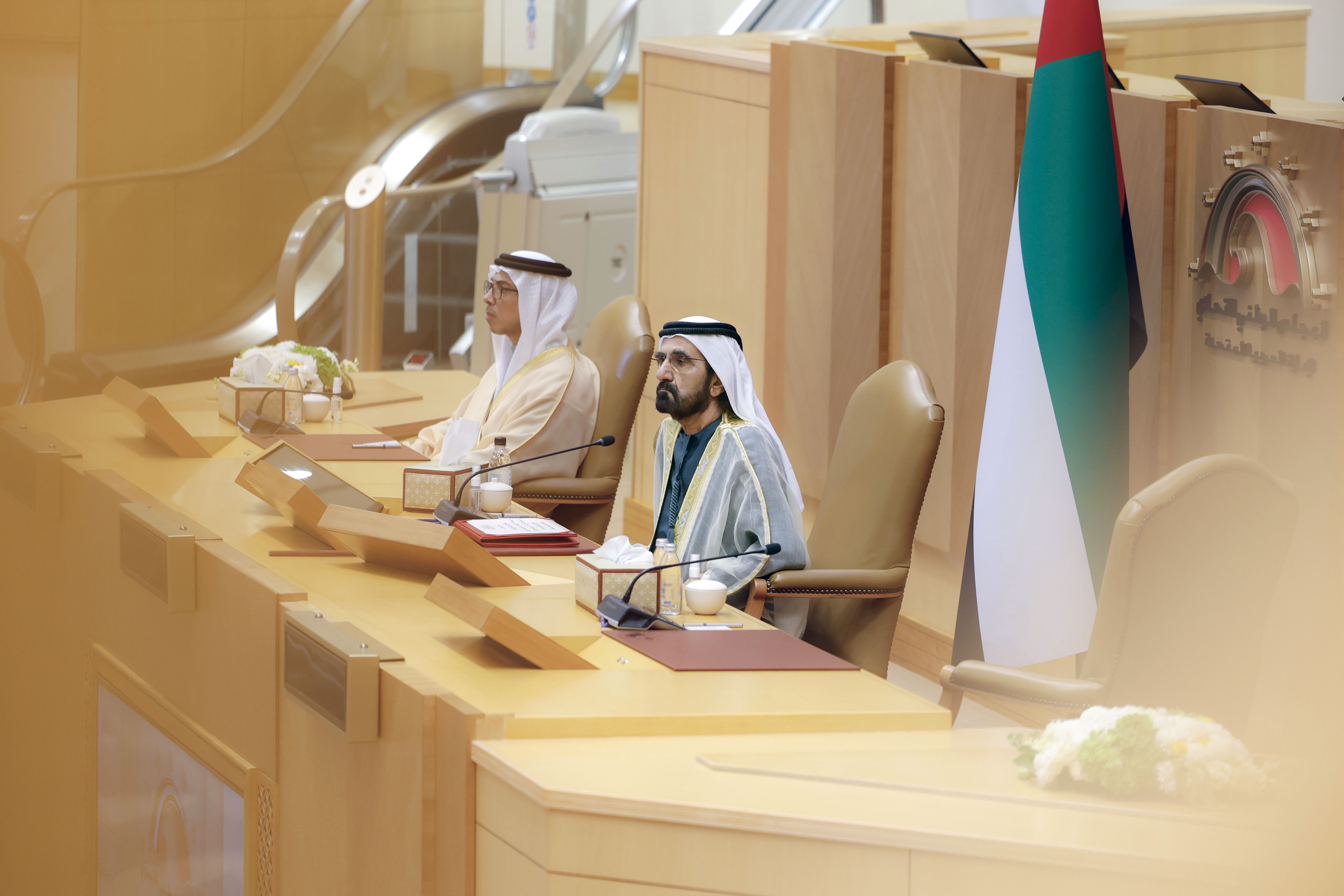 On behalf of His Highness Sheikh Mohamed bin Zayed Al Nahyan, President of the UAE, His Highness Sheikh Mohammed bin Rashid Al Maktoum, Vice President and Prime Minister of the UAE and Ruler of Dubai, opened today, the third ordinary session of the 18th legislative chapter of the Federal National Council. His Highness Sheikh Mansour bin Zayed Al Nahyan, Vice President, Deputy Prime Minister, and Chairman of the Presidential Court, also attended the opening ceremony.