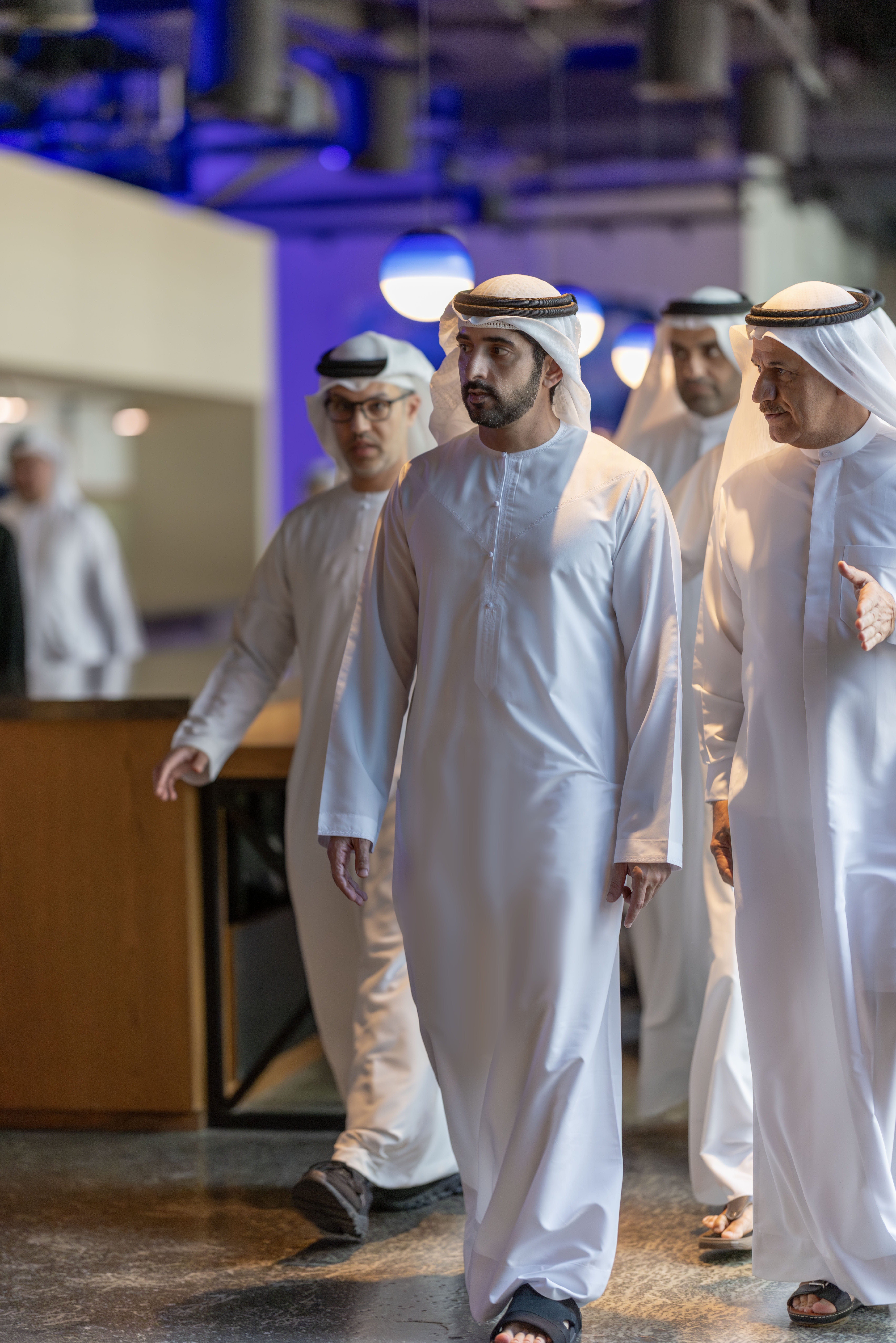 His Highness was received upon his arrival at Dubai Founders HQ by His Excellency Omar Sultan Al Olama, Minister of State for Artificial Intelligence, Digital Economy and Remote Work Applications; His Excellency Sultan bin Saeed Al Mansoori, Chairman of Dubai Chambers; His Excellency Helal Saeed Almarri, Director General of Dubai Department of Economy and Tourism (DET); Mohammad Ali Rashed Lootah, President and CEO of Dubai Chambers; and Hadi Badri, CEO of the Dubai Economic Development Corporation.