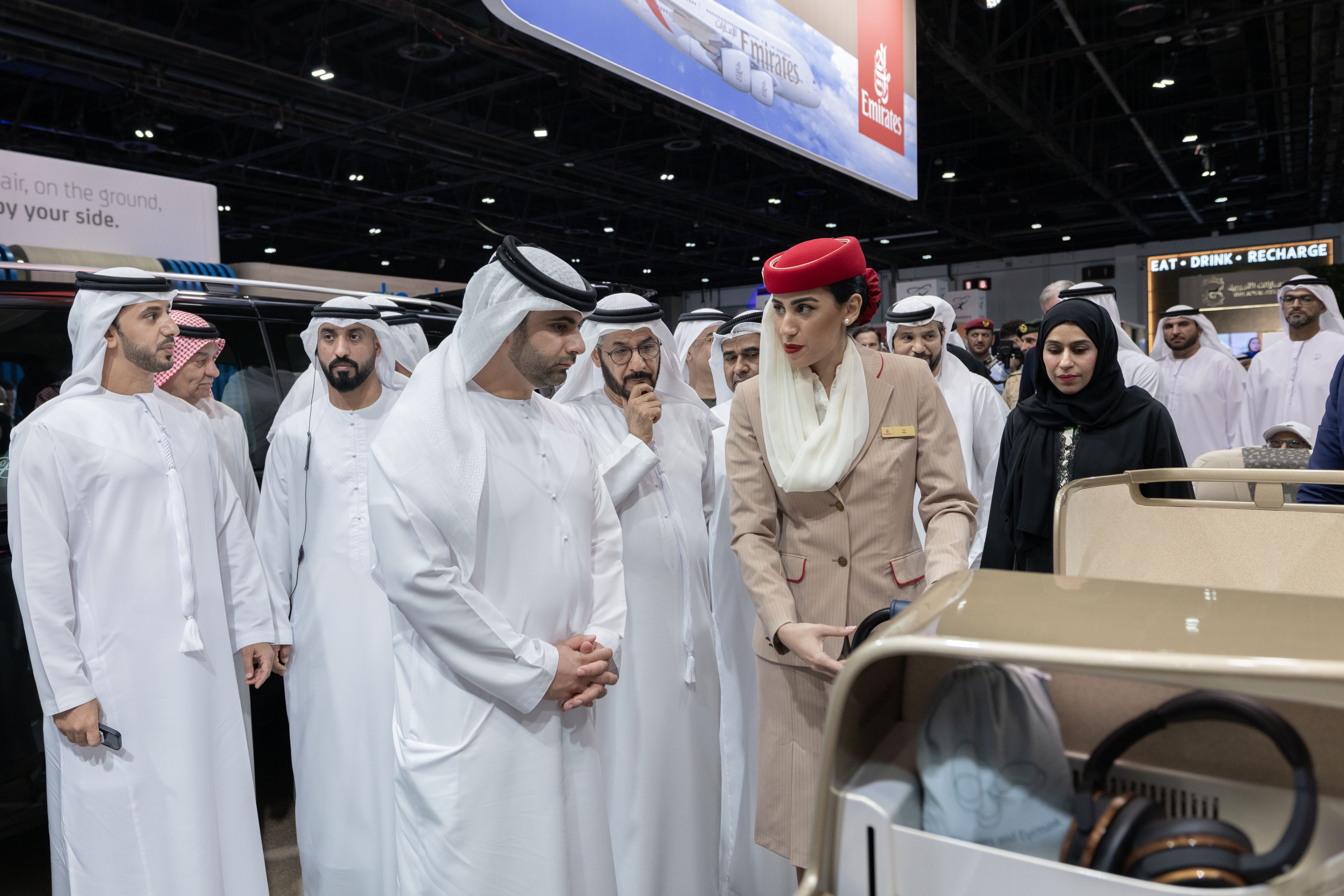 His Highness also visited pavilions of Dubai Duty Free, Emirates Airlines, Ministry of Family, Mohammed Bin Rashid Housing Establishment, Dubai Department of Economy and Tourism, and the Zayed Higher Organization for People of Determination.