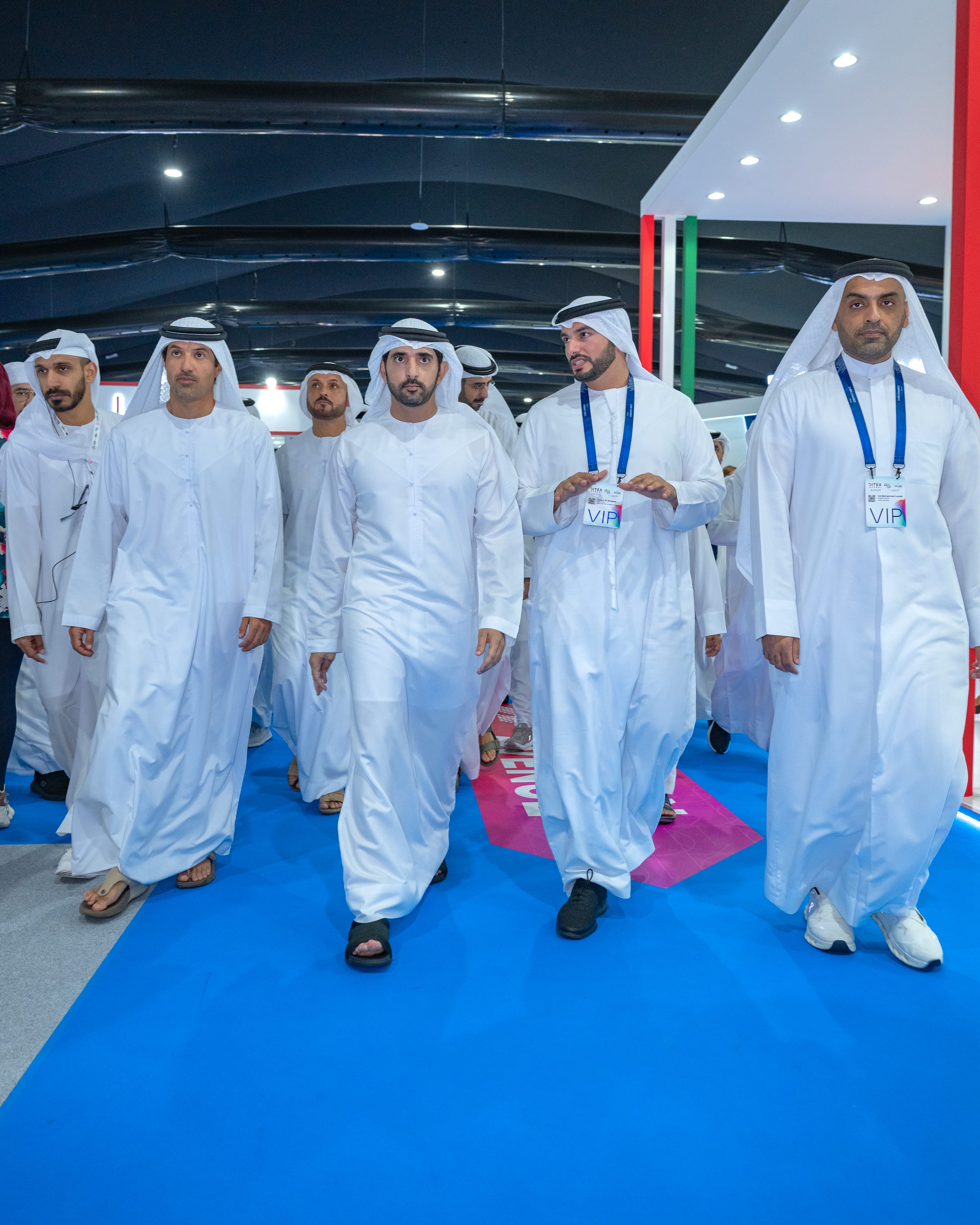 His Highness toured several pavilions at the event, where he was briefed on global participation and innovative solutions presented by leading companies in investment, technology, and future industries. These initiatives contribute to advancing digital business ecosystems and strengthening the infrastructure that enables startups to grow and expand.