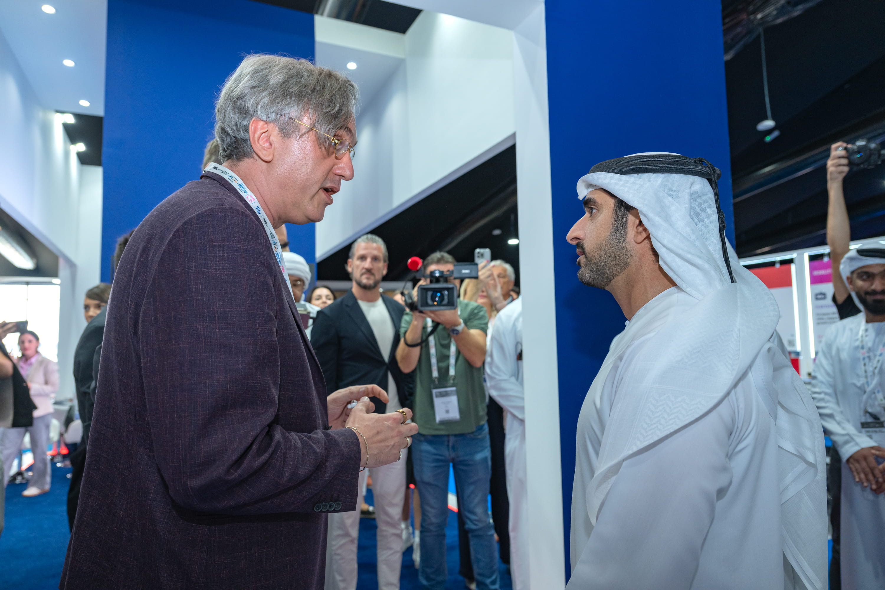 Accompanying His Highness during the visit were His Excellency Omar Sultan Al Olama, Minister of State for Artificial Intelligence, Digital Economy and Remote Work Applications and Chairman of the Dubai Chamber of Digital Economy; His Excellency Helal Saeed Almarri, Director General of the Dubai Department of Economy and Tourism; His Excellency Mohammad Ali Rashed Lootah, Director General of Dubai Chambers; His Excellency Omran Sharaf, Assistant Minister of Foreign Affairs for Advanced Science and Technology; and Saeed Al Gergawi, Vice President of the Dubai Chamber of Digital Economy.