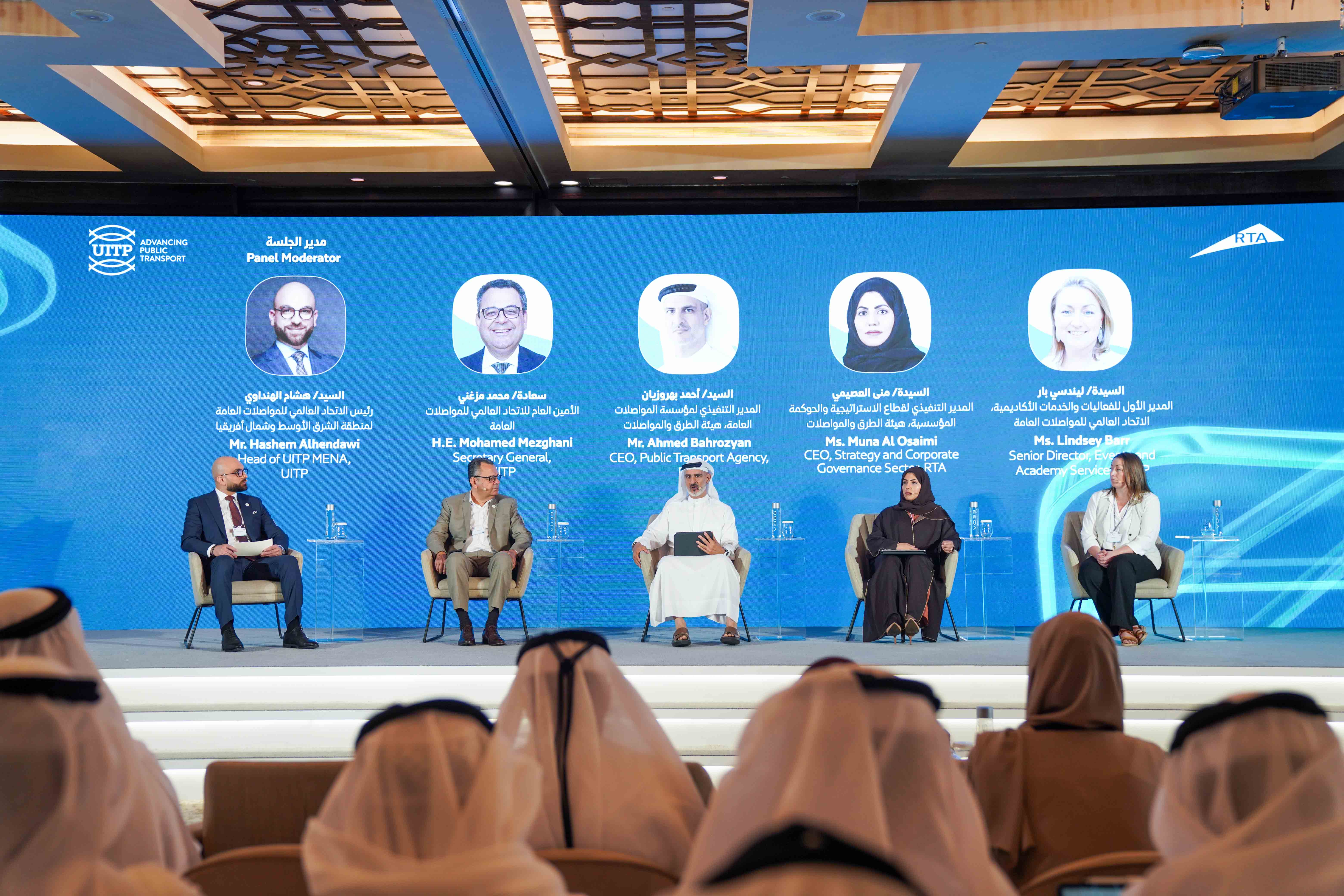 The programme also featured a panel discussion with the participation of Mohamed Mezghani, Secretary General of the UITP; Ahmed Hashim Bahrozyan, CEO of Public Transport Agency, RTA and Chairman of the Organising Committee of the UITP Global Public Transport Summit 2026, Muna Al Osaimi, CEO of Strategy and Corporate Governance Sector at RTA; and Lindsay Barr, Senior Director of Events and Academy Services at UITP.