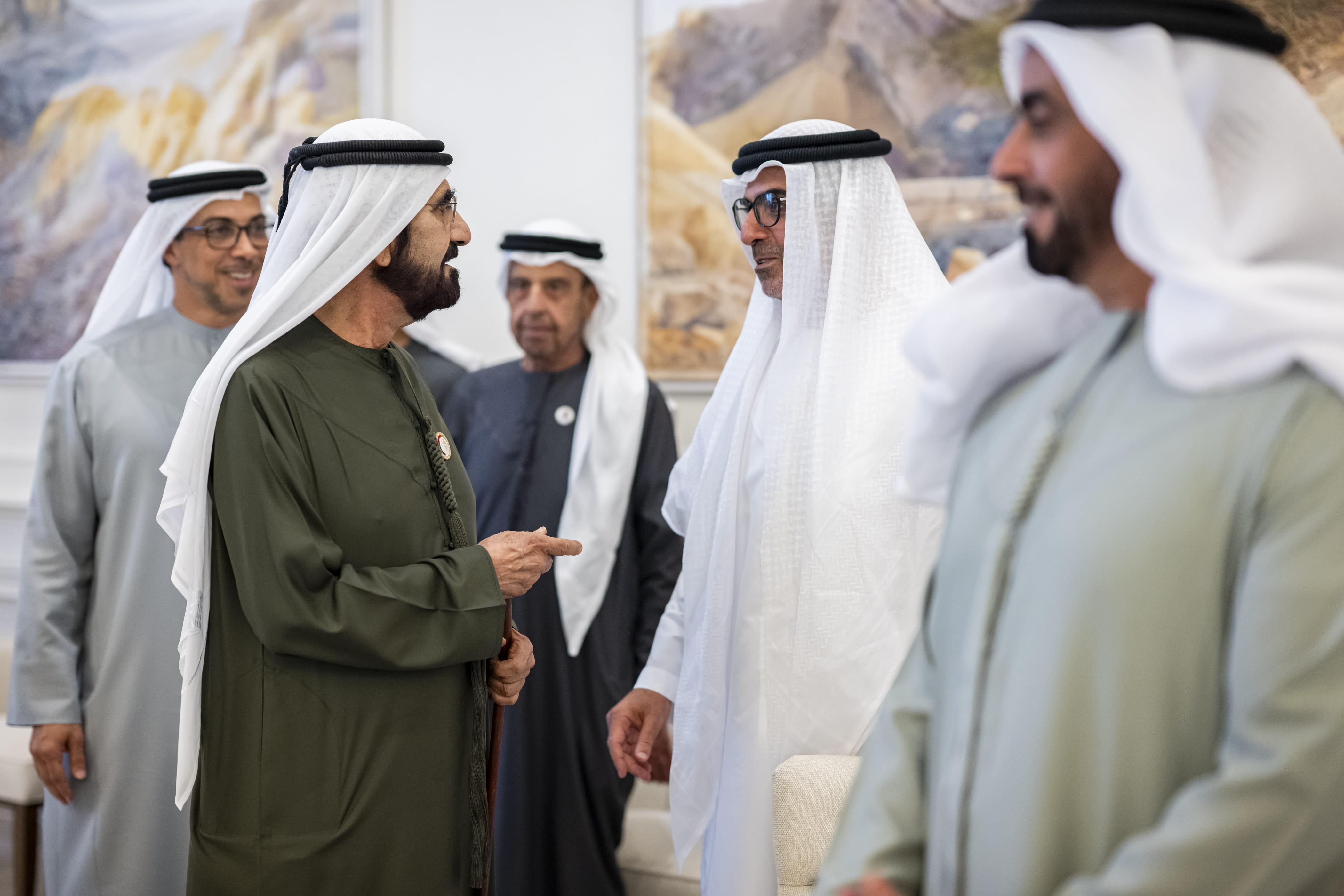 The meeting was attended by H.H. Sheikh Khaled bin Mohamed bin Zayed Al Nahyan, Crown Prince of Abu Dhabi; H.H. Sheikh Hamdan bin Zayed Al Nahyan, Ruler’s Representative in Al Dhafra Region; H.H. Sheikh Saif bin Mohamed Al Nahyan; H.H. Sheikh Surour bin Mohamed Al Nahyan; Lt. General H.H. Sheikh Saif bin Zayed Al Nahyan, Deputy Prime Minister and Minister of the Interior; H.H. Sheikh Hamed bin Zayed Al Nahyan; H.H. Sheikh Khalid bin Zayed Al Nahyan, Chairman of Zayed Higher Organisation for People of Determination; H.H. Sheikh Dr. Sultan bin Khalifa Al Nahyan, Adviser to the UAE President; H.H. Sheikh Theyab bin Mohamed bin Zayed Al Nahyan, Deputy Chairman of the Presidential Court for Development and Fallen Heroes' Affairs; H.H. Sheikh Hamdan bin Mohamed bin Zayed Al Nahyan, Deputy Chairman of the Presidential Court for Special Affairs; H.H. Sheikh Zayed bin Mohamed bin Zayed Al Nahyan; H.H. Sheikh Ahmed bin Saeed Al Maktoum, Chairman of Dubai Civil Aviation Authority, Chairman of Dubai Airports and Chairman and Chief Executive of Emirates Airline and Group; Sheikh Nahyan bin Mubarak Al Nahyan, Minister of Tolerance and Coexistence; and Sheikh Mohammed bin Hamad bin Tahnoun Al Nahyan, Adviser to the UAE President; along with several sheikhs, senior officials, guests and Emirati citizens.