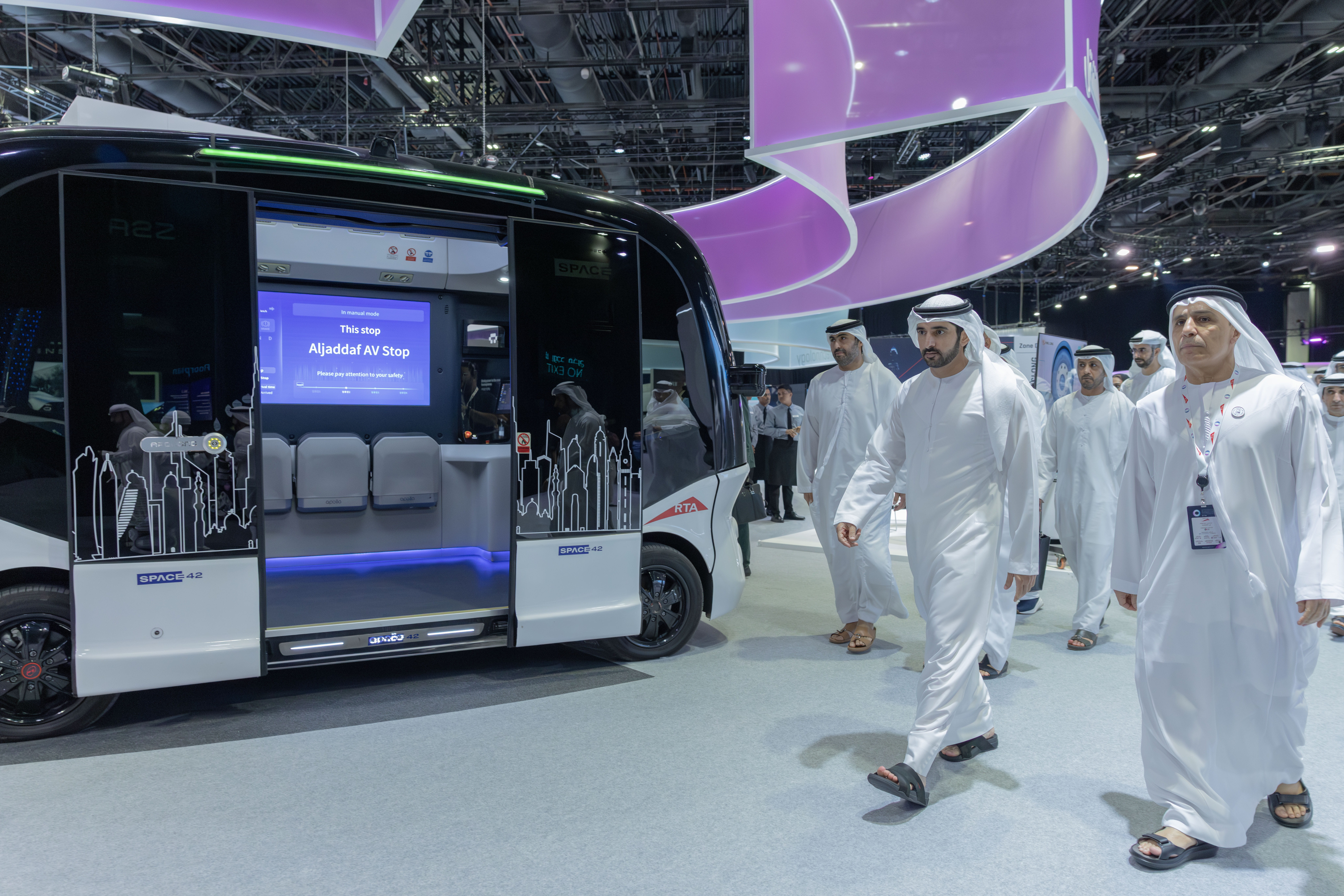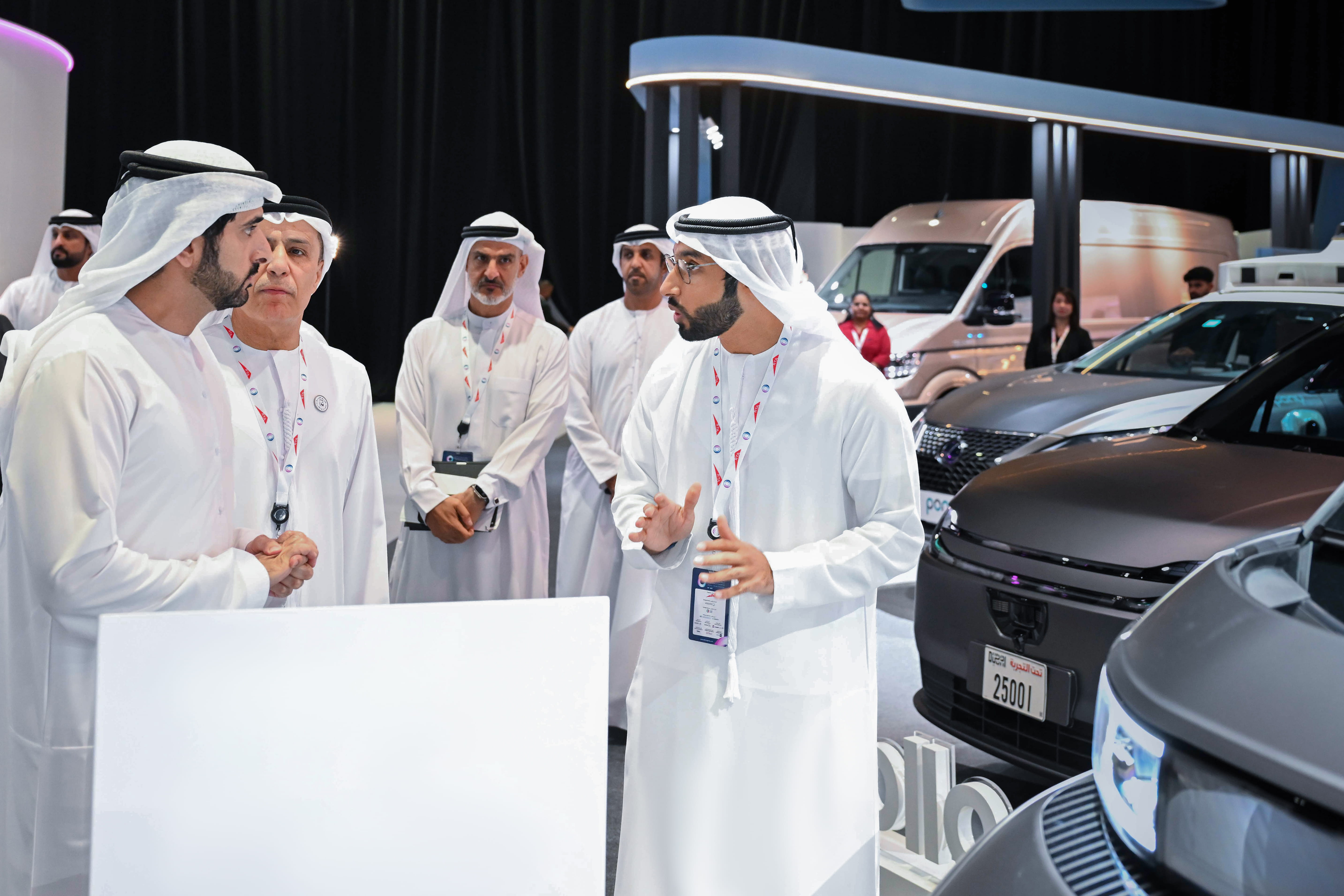 His Highness Sheikh Hamdan bin Mohammed bin Rashid Al Maktoum, Crown Prince of Dubai, Deputy Prime Minister, Minister of Defence, and Chairman of The Executive Council of Dubai, in the presence of His Highness Sheikh Ahmed bin Mohammed bin Rashid Al Maktoum, Second Deputy Ruler of Dubai, inaugurated the Dubai World Self-Driving Transport Exhibition, organised by the Roads and Transport Authority (RTA).