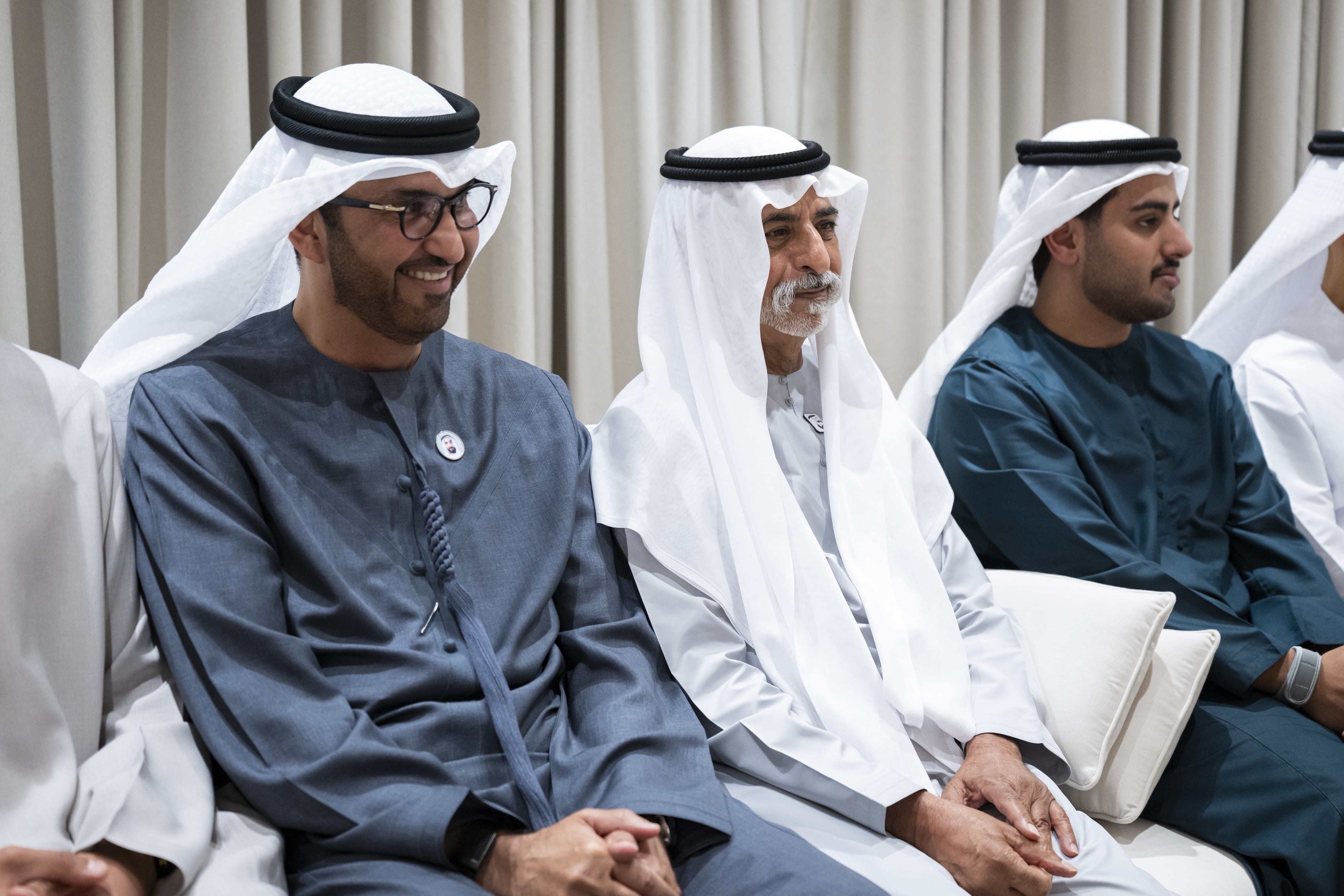 The meeting was attended by H.H. Sheikh Khaled bin Mohamed bin Zayed Al Nahyan, Crown Prince of Abu Dhabi; H.H. Sheikh Maktoum bin Mohammed bin Rashid Al Maktoum, First Deputy Ruler of Dubai, Deputy Prime Minister, Minister of Finance; H.H. Sheikh Ahmed bin Mohammed bin Rashid Al Maktoum, Second Deputy Ruler of Dubai; H.H. Sheikh Hazza bin Zayed Al Nahyan, Ruler's Representative in Al Ain Region; H.H. Lt. General Sheikh Saif bin Zayed Al Nahyan, Deputy Prime Minister and Minister of the Interior; H.H. Sheikh Hamed bin Zayed Al Nahyan; H.H. Sheikh Khalid bin Zayed Al Nahyan, Chairman of the Board of Trustees of Zayed Authority for People of Determination; H.H. Sheikh Theyab bin Mohamed bin Zayed Al Nahyan, Deputy Chairman of the Presidential Court for Development and Fallen Heroes’ Affairs; H.H. Sheikh Hamdan bin Mohamed bin Zayed Al Nahyan, Deputy Chairman of the Presidential Court for Special Affairs; H.H. Sheikh Ahmed bin Saeed Al Maktoum, President of the Dubai Civil Aviation Authority and Chairman and Chief Executive of Emirates Airline and Group; Sheikh Nahyan bin Mubarak Al Nahyan, Minister of Tolerance and Coexistence; Sheikh Mohammed bin Hamad bin Tahnoun Al Nahyan, Adviser to the UAE President; along with a number of Sheikhs and officials.