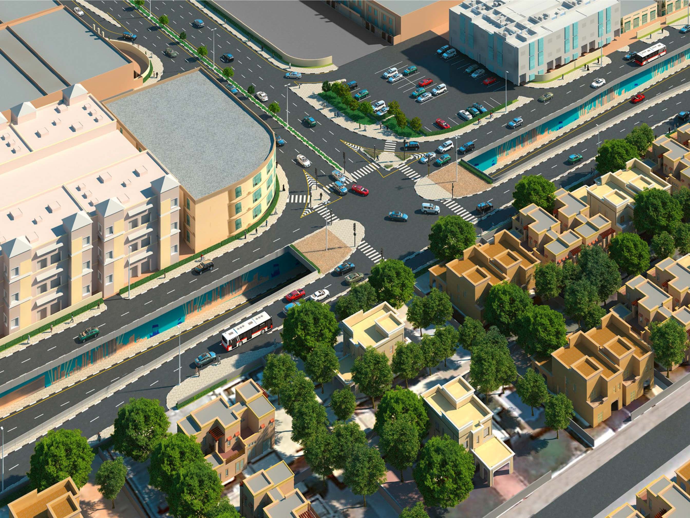 The project includes the development of 6 intersections along Umm Suqeim Street with Jumeirah Street, Al Wasl Road, Sheikh Zayed Road and Al Khail Road. It also includes the construction of 4 bridges and 2 tunnels extending 4,100 metres in total. A tunnel will be constructed at the intersection of Umm Suqeim Street and Jumeirah Street, with 2 lanes in each direction, along with a signalised at-grade junction. Another tunnel will be constructed at the intersection of Umm Suqeim Street and Al Wasl Road, providing 2 lanes from Sheikh Zayed Road towards Jumeirah Street, while ensuring free and direct at-grade traffic flow towards Sheikh Zayed Road.