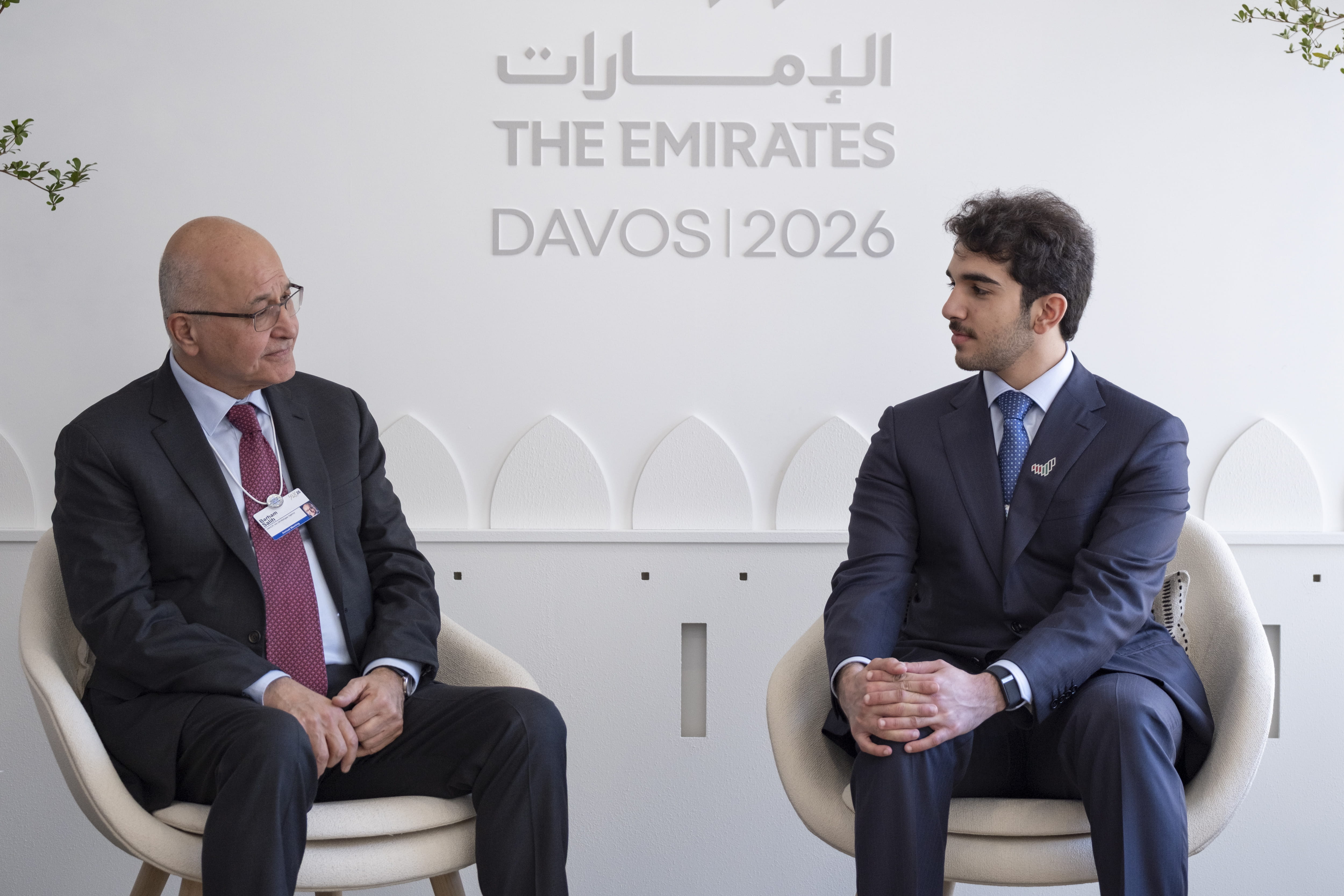 In a meeting hosted at the UAE Pavilion at the 56th edition of the World Economic Forum 2026, His Highness Sheikh Mohammed bin Rashid bin Mohammed bin Rashid Al Maktoum, Member of the Board of Trustees of MBRGI, discussed with Dr. Barham Salih, UN High Commissioner for Refugees, prospects of strengthening cooperation between MBRGI and UNHCR. They also discussed coordinating efforts to achieve shared visions, and building on the successes achieved since the partnership started in 2021.